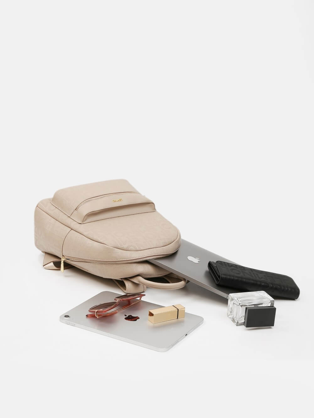Balo thời trang nữ được hoàn thiện với họa tiết monogram embossed khắc trên da mang đến vẻ trẻ trung năng động nhưng không kém phần thanh lịch. Các chi tiết kim loại được mạ lớp chống ăn mòn giúp chống chịu tốt hơn với khí hậu nóng ẩm tại châu Á.