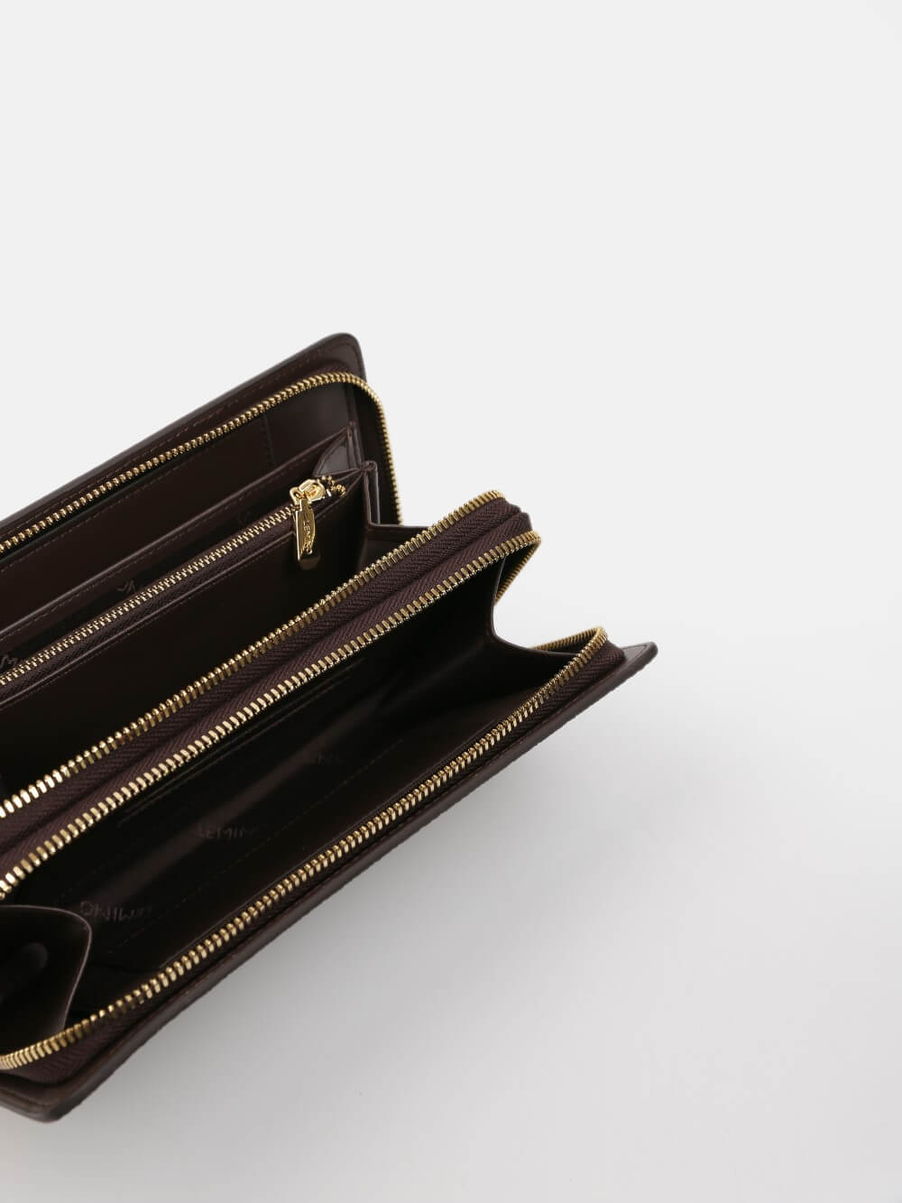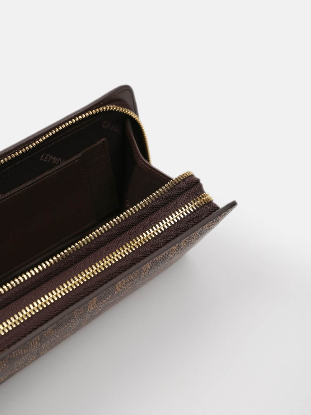 Bóp cầm tay LEMINO mang thiết kế hiện đại với họa tiết logo monogram đặc trưng, sang trọng và đường cắt may sắc nét. Kích thước vừa vặn giúp cất giữ điện thoại, ví tiền, giấy tờ hay thẻ tiện lợi. Dây đeo tay tháo rời linh hoạt, dễ mang theo khi đi làm hay dạo phố.