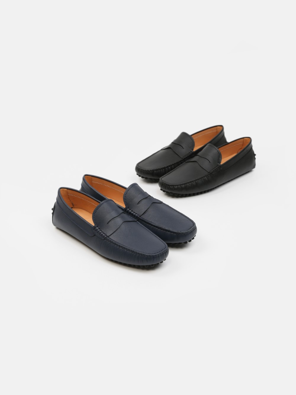 Giày lười nam da Saffiano, đế đinh cao su êm nhẹ – phong cách driving loafer sang trọng. Thiết kế penny tối giản, chất da bền đẹp, thoáng khí; đế bám tốt khi di chuyển và lái xe