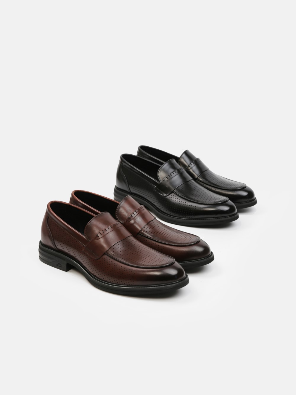 Giày lười công sở, thiết kế Penny Loafer đục lỗ thoáng khí. Form lịch lãm, đế cao su êm nhẹ, mang thoải mái cả ngày. Hai màu: Đen / Nâu, phù hợp đi làm – sự kiện – gặp gỡ.