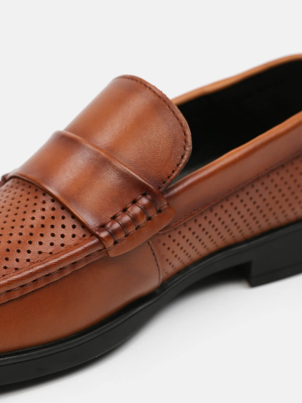Giày lười công sở nam da cao cấp, thiết kế Penny Loafer đục lỗ thoáng khí. Chất da mềm, form sang trọng, đế cao su bền nhẹ chống trượt. Tông nâu cognac dễ phối đồ, phù hợp đi làm – dự sự kiện.
