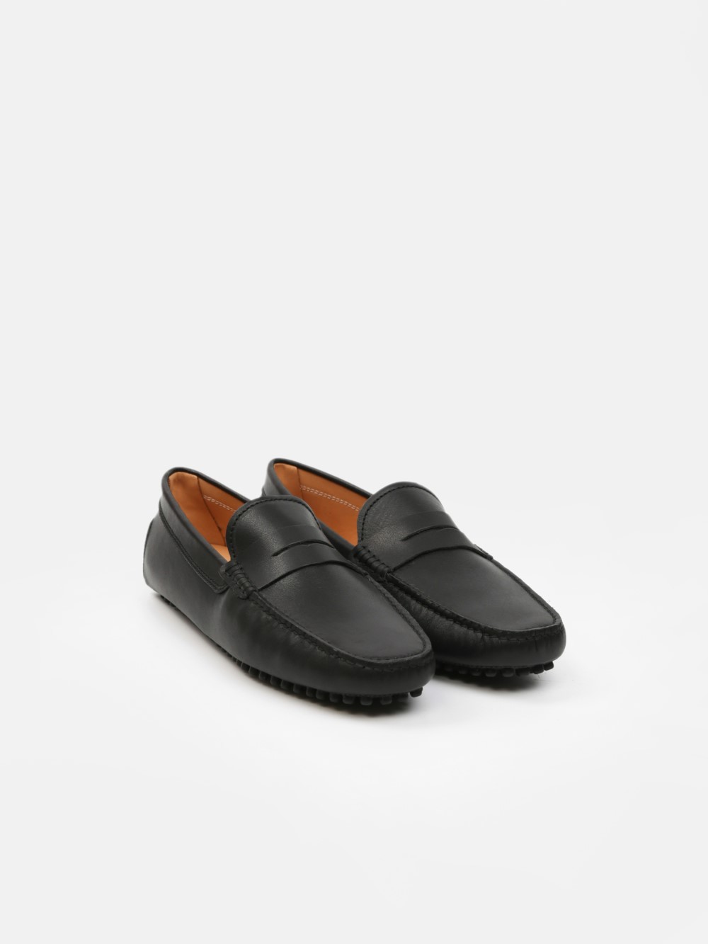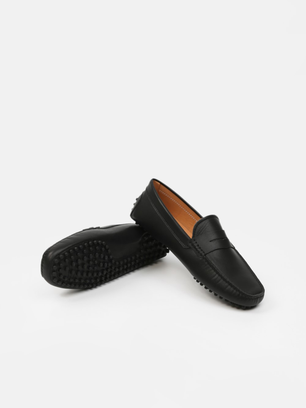 Giày lười nam da mềm phong cách Driving Loafer. Đế đinh cao su bám chắc, êm nhẹ khi di chuyển; chất da mềm, giữ form tốt. Màu Xám / Đen, phù hợp đi làm, dạo phố và lái xe.