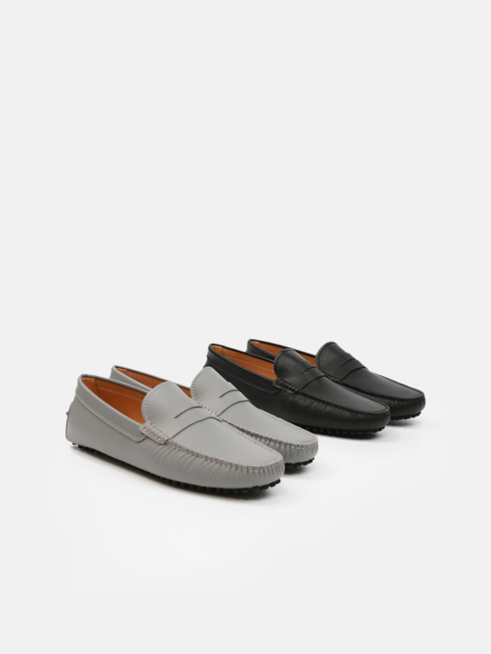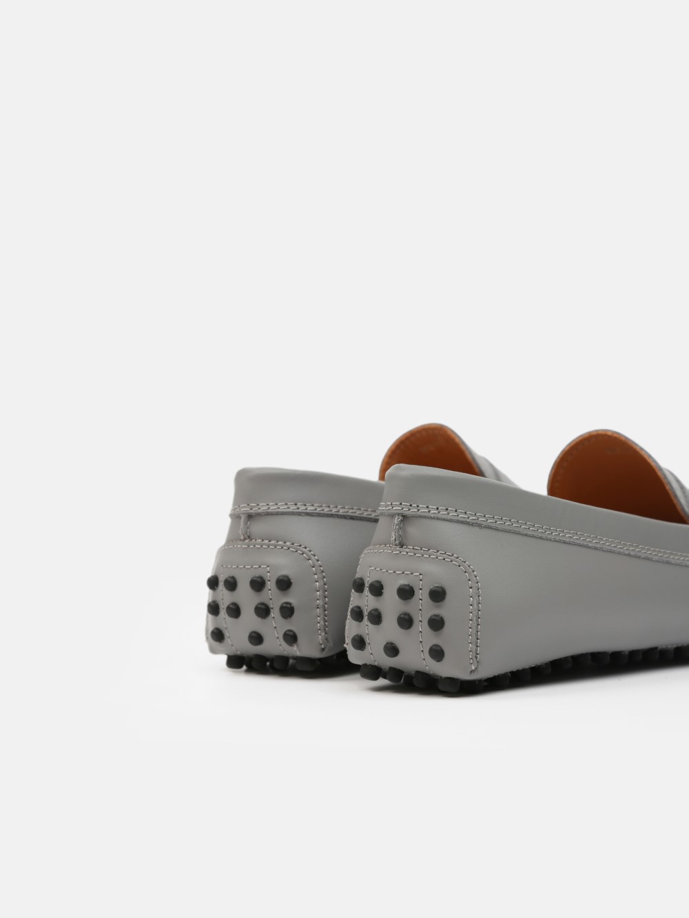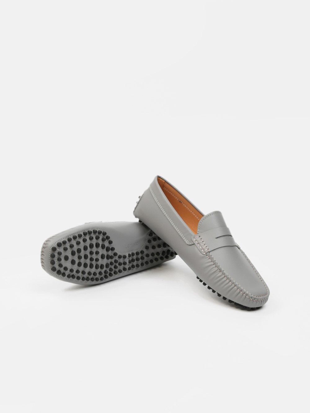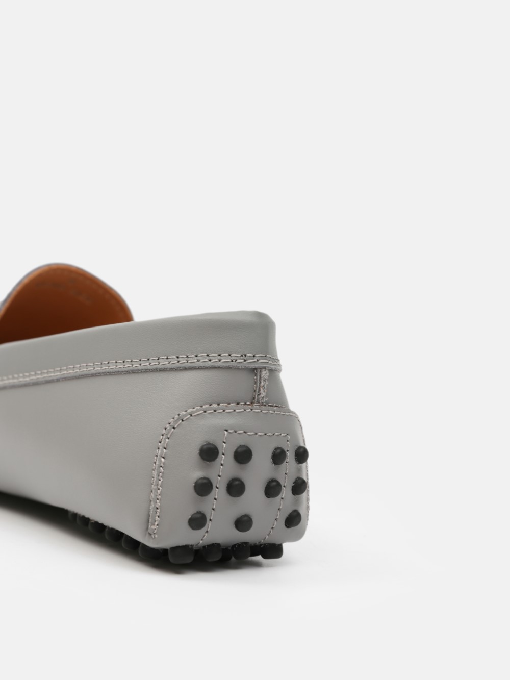 Giày lười nam da mềm phong cách Driving Loafer. Đế đinh cao su bám chắc, êm nhẹ khi di chuyển; chất da mềm, giữ form tốt. Màu Xám / Đen, phù hợp đi làm, dạo phố và lái xe.