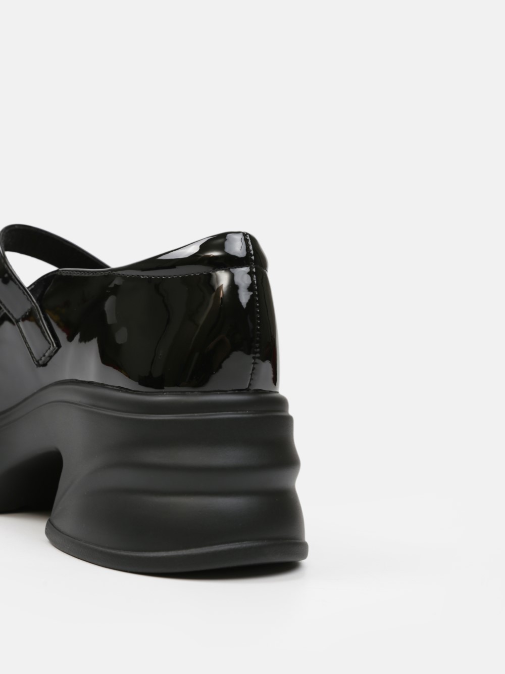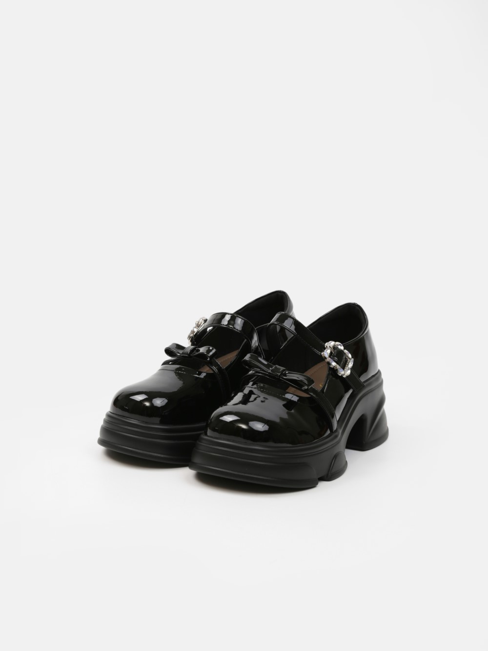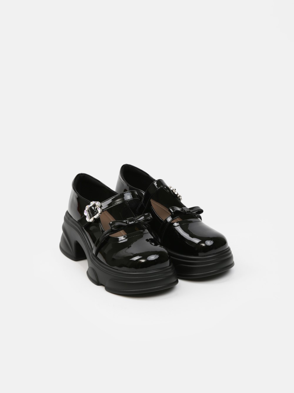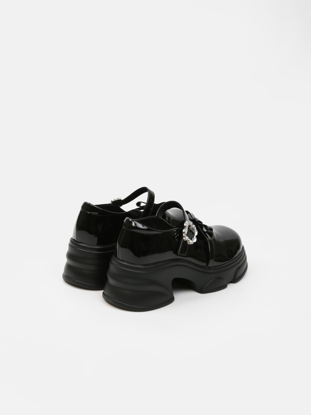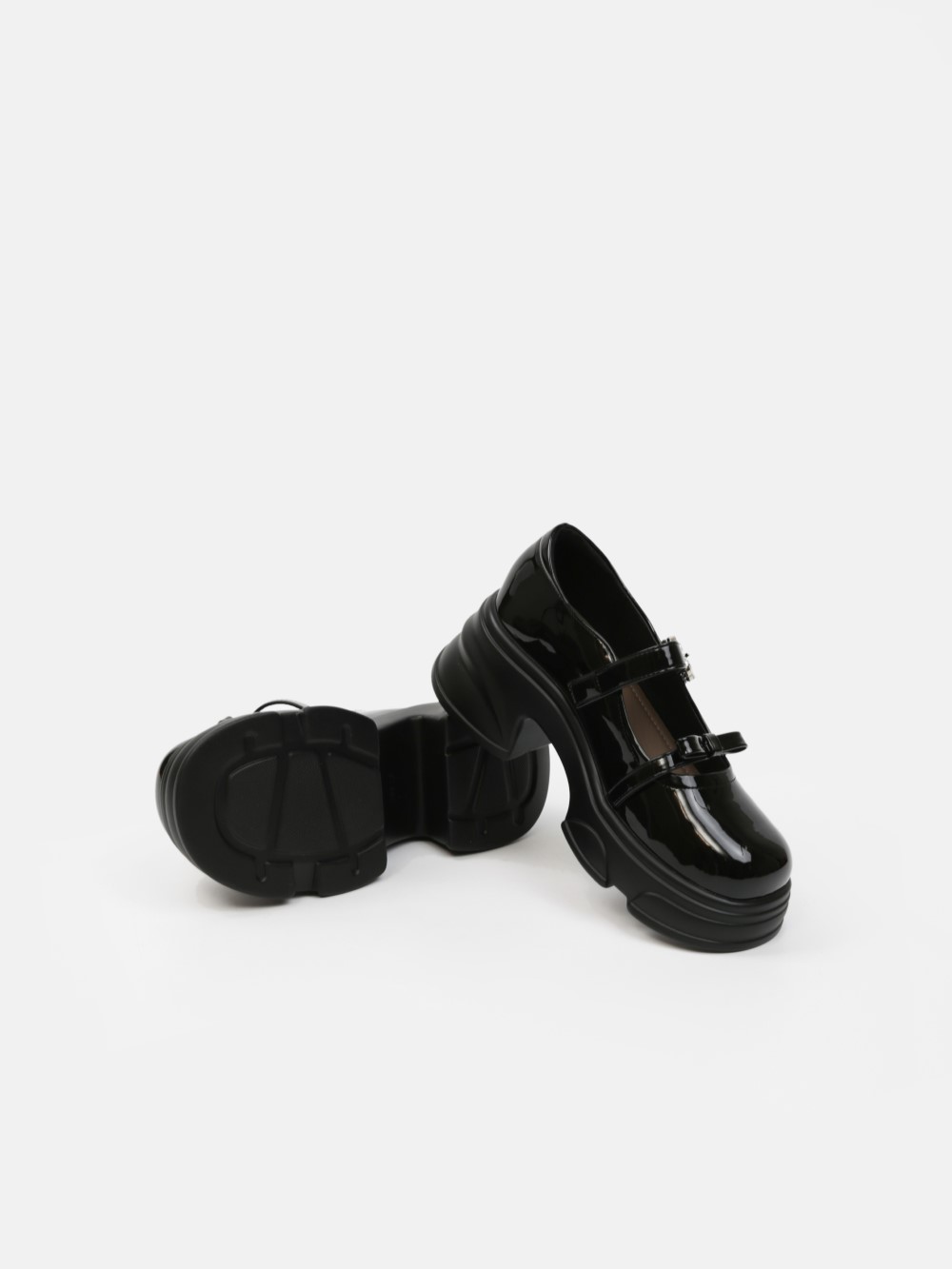 Đôi giày Mary Jane đế thô mang tinh thần hiện đại pha chút cổ điển, nổi bật với thiết kế khóa trang trí ánh kim và chất liệu da bóng sang trọng. Phần đế platform vững chãi tạo hiệu ứng tôn chiều cao nhưng vẫn êm ái khi di chuyển.