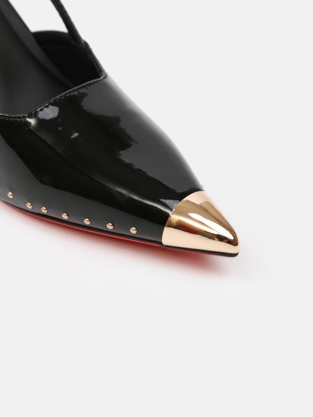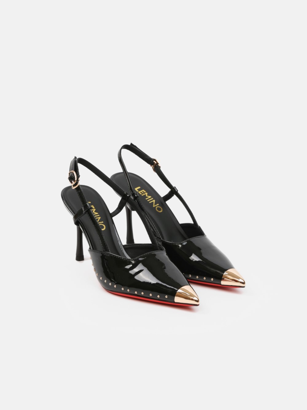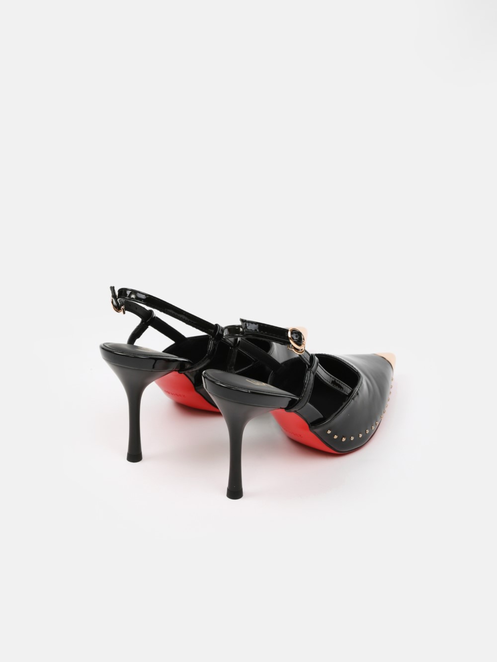 Đôi giày cao gót mũi nhọn slingback mang tinh thần thời trang cao cấp, tôn vinh vẻ đẹp tự tin và quyến rũ của nàng trong những khoảnh khắc cần sự nổi bật. Thiết kế mũi nhọn sắc sảo kết hợp chụp mũi ánh kim tạo điểmnhấn tinh tế, giúp tổng thể trở nên sang trọng và cuốn hút ngay từ ánh nhìn đầu tiê