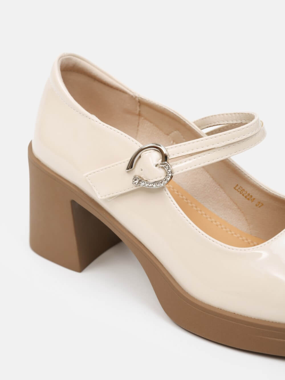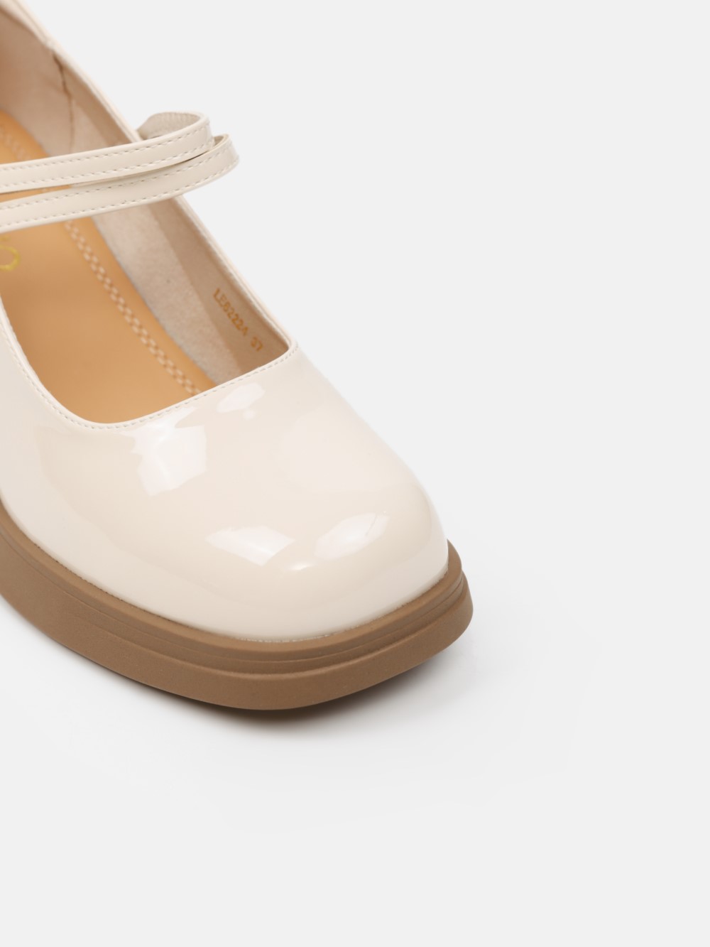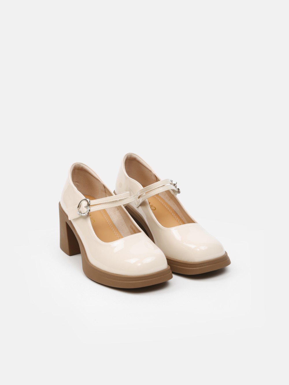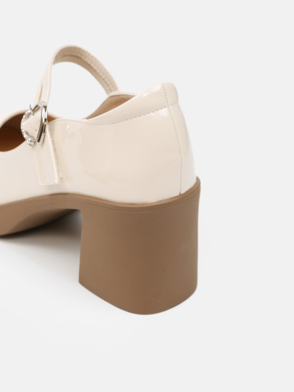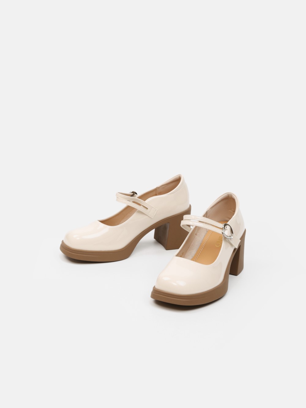 Đôi giày Mary Jane gót vuông mang phong cách cổ điển được làm mới với phom dáng hiện đại và chất liệu da bóng sang trọng. Thiết kế mũi tròn mềm mại kết hợp quai ngang cài khóa kim loại tạo điểm nhấn tinh tế, vừa giúp cố định bàn chân chắc chắn, vừa tăng nét nữ tính cho tổng thể.