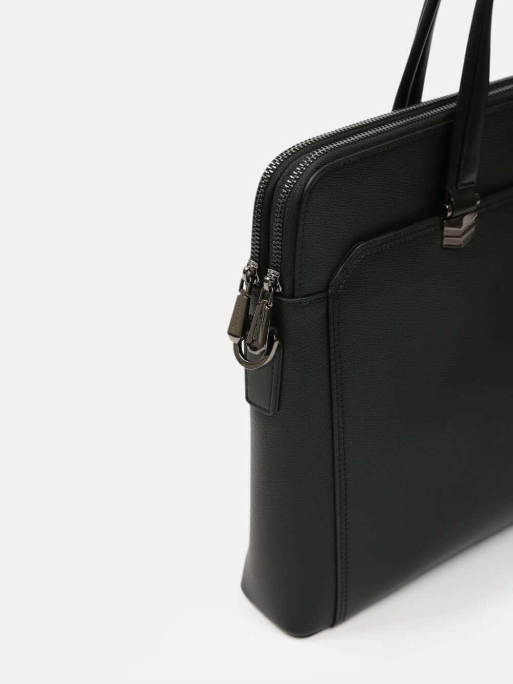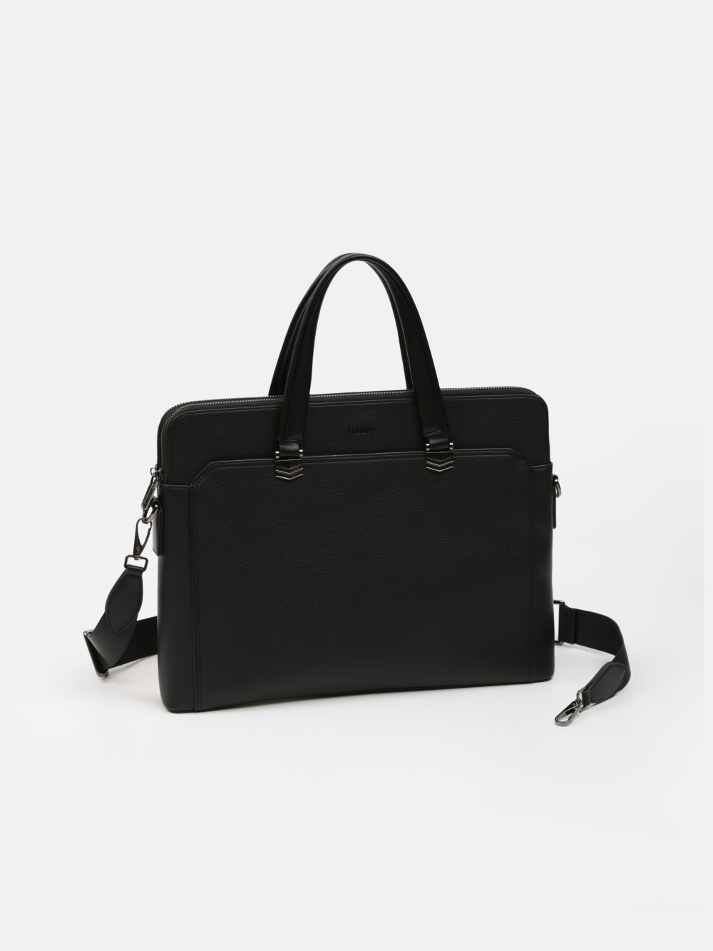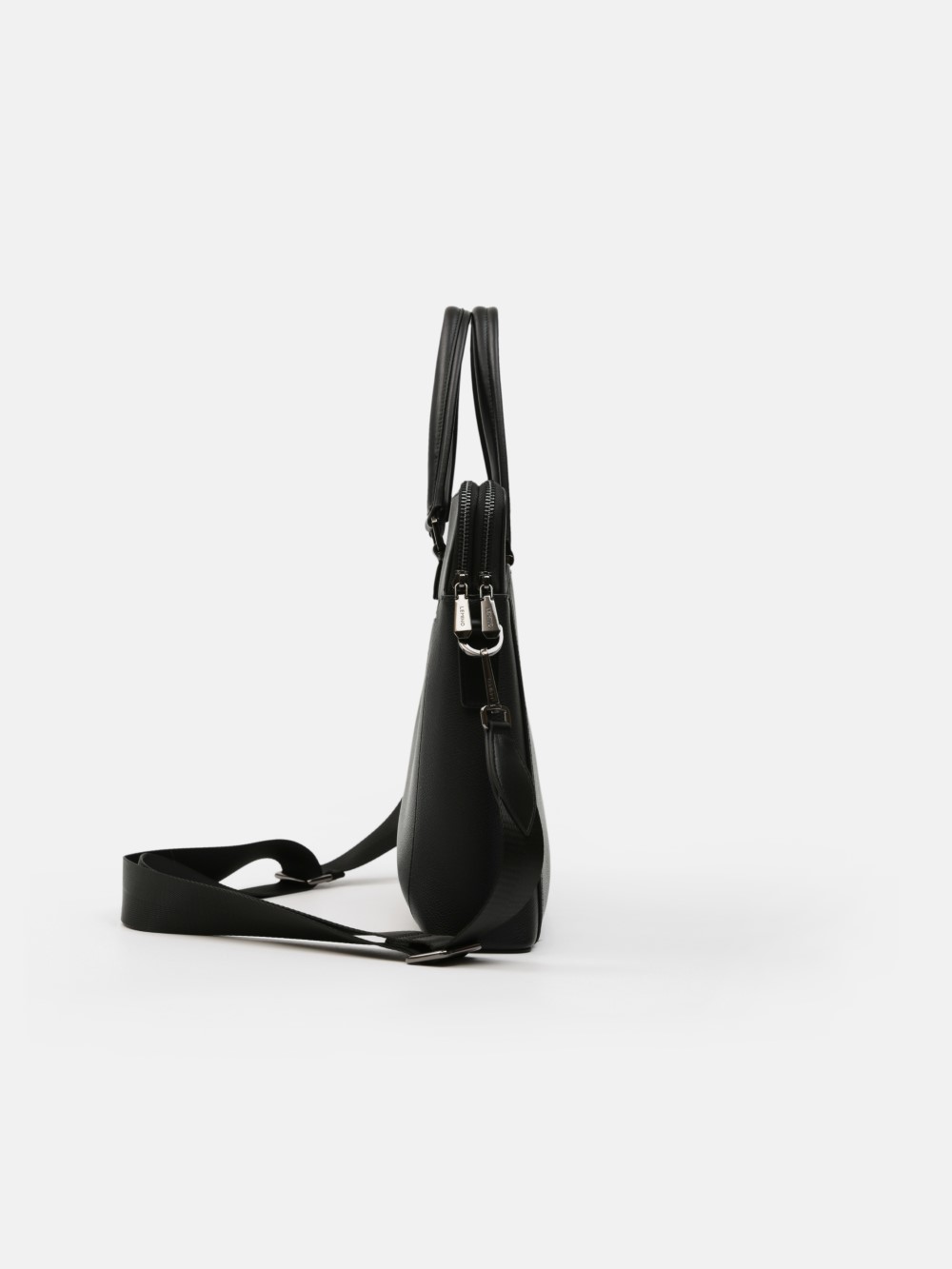 Cặp nam phom hộp mảnh mai với bề mặt da hạt chống trầy nhẹ, viền bo tinh gọn và phụ kiện kim loại màu gunmetal. Ngăn chính chứa tài liệu A4, laptop mỏng 13–14", kèm các ngăn phụ cho bút, thẻ, cáp; phía trước có ngăn nhanh tay. Đi kèm quai xách đôi và dây đeo tháo rời bản rộng cho hai cách mang linh hoạt. Dễ phối từ suit công sở đến smart–casual cuối tuần, giữ hình ảnh gọn gàng, chuyên nghiệp trong mọi lịch trình.