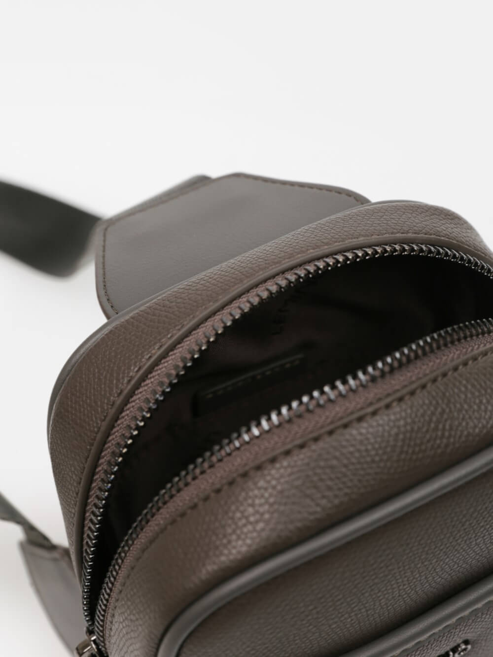 Thiết kế túi đeo chéo nam LEMINO mang phom dáng đứng nhỏ gọn, đường nét bo tròn tinh tế giúp tổng thể trở nên hiện đại nhưng không cứng nhắc. Bề mặt da trơn cao cấp, kết hợp logo kim loại tối giản – tạo nên vẻ ngoài thanh lịch, phù hợp với nhiều phong cách khác nhau.