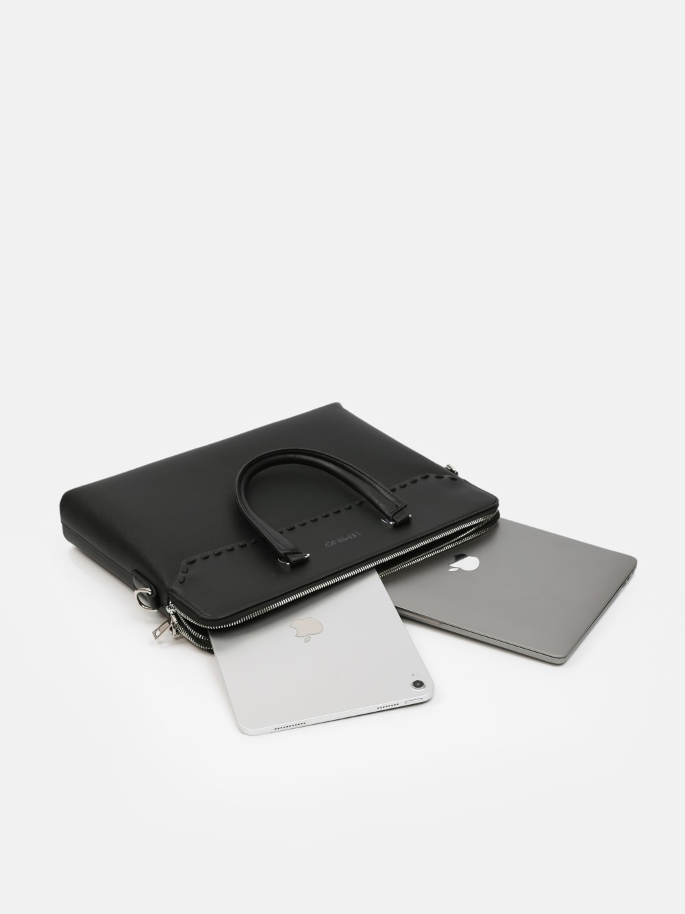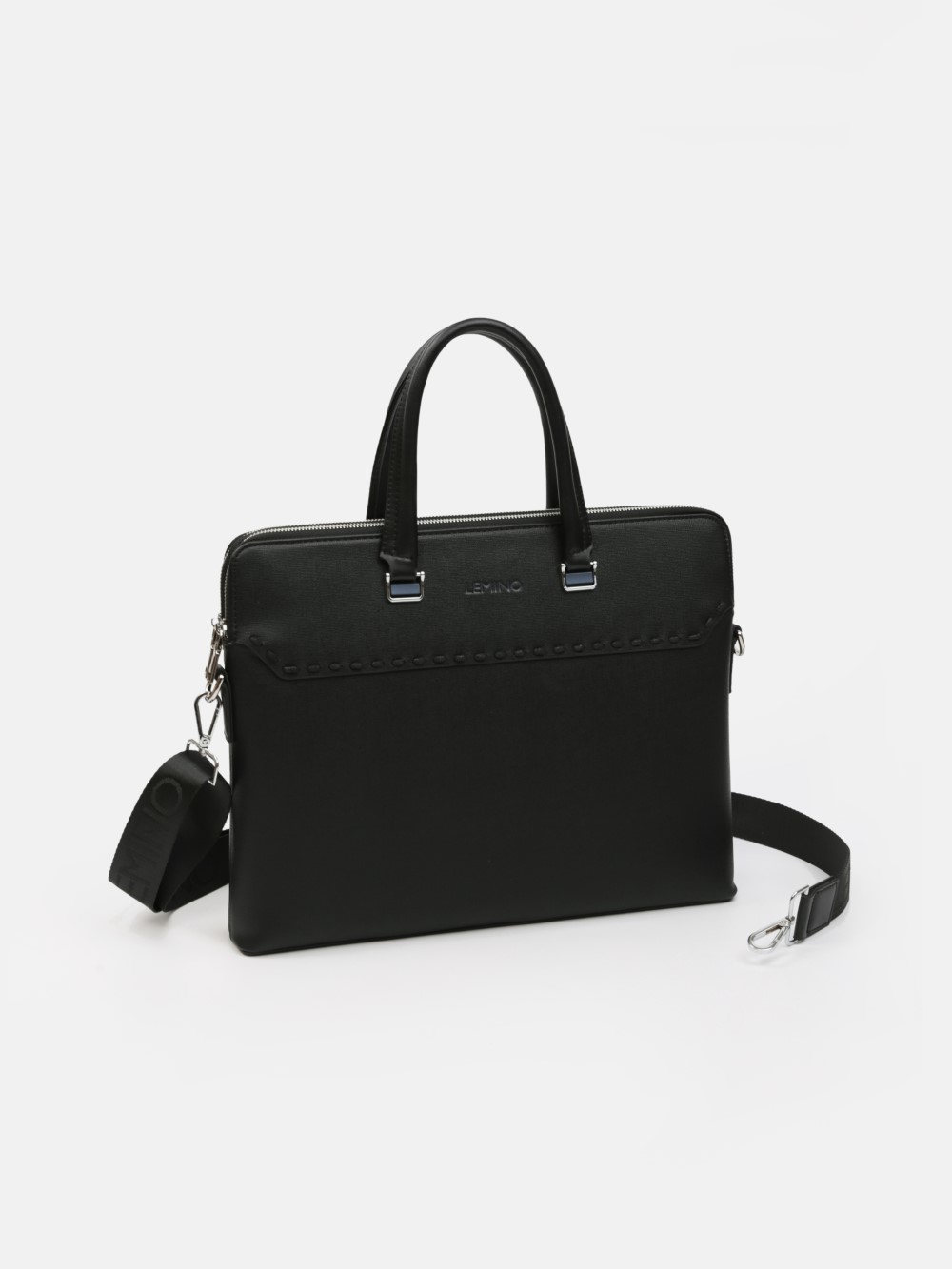 Túi công sở dáng briefcase LEMINO – phom đứng, tối giản lịch lãm. Thiết kế bản mỏng gọn, tay xách đôi chắc chắn, khoá kéo an toàn; điểm nhấn đai ngang với đinh tán tinh tế. Phù hợp mang đi làm, đi họp, đựng tài liệu và thiết bị mỏng