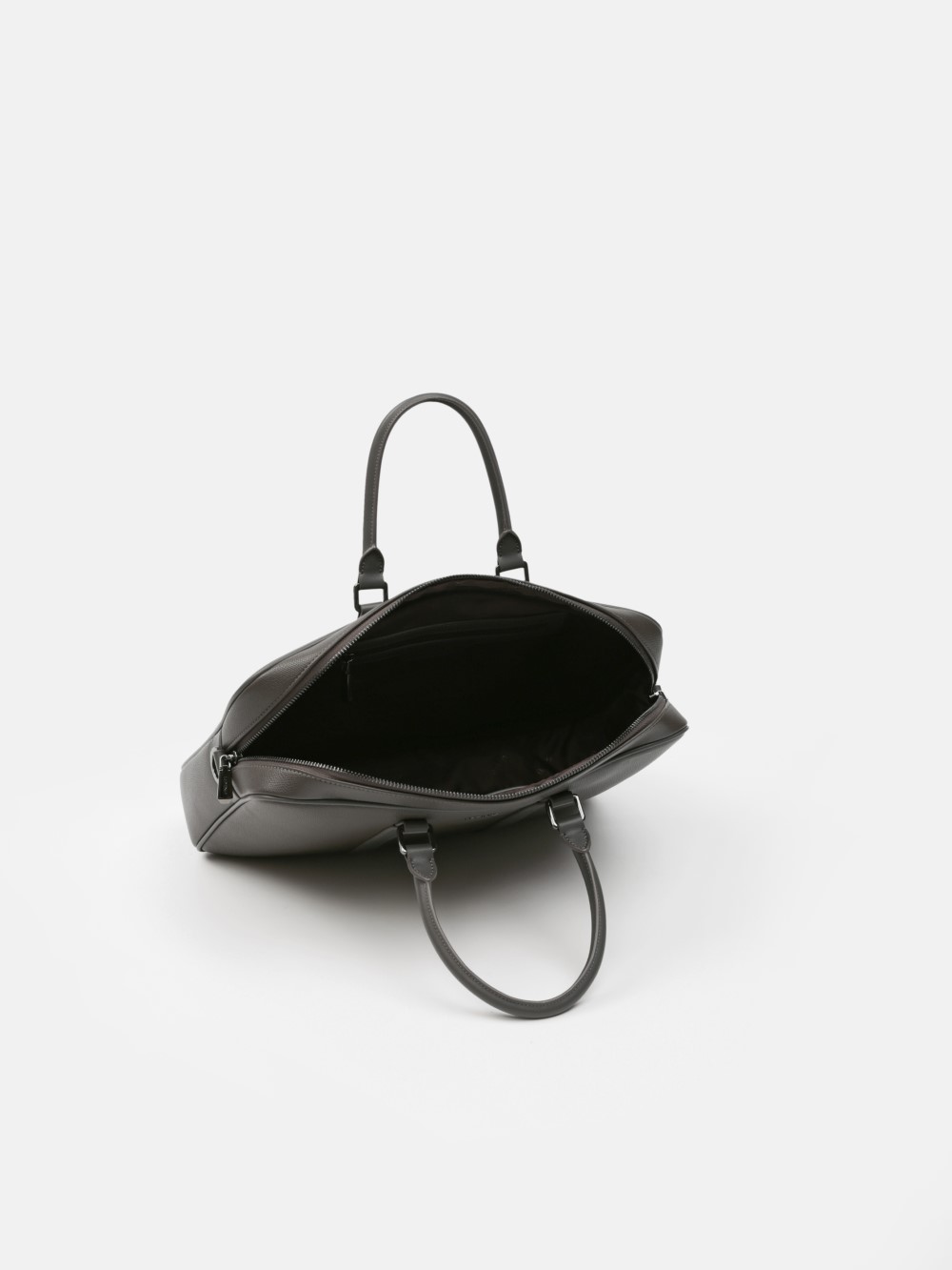 Cặp nam phom hộp tối giản, bề mặt da hạt chống xước nhẹ, điểm nhấn hai dải dọc và khoá kéo đôi kim loại trầm. Ngăn chính chứa tài liệu A4, laptop mỏng 13–14", bố trí thêm ngăn phụ cho điện thoại – bút – cáp. Đi kèm dây đeo bản rộng tháo rời và quai xách đôi, giữ phom đứng đẹp khi sử dụng. Dễ phối từ suit công sở đến smart-casual cuối tuần, giúp anh giữ vẻ gọn gàng và chuyên nghiệp suốt ngày dài.