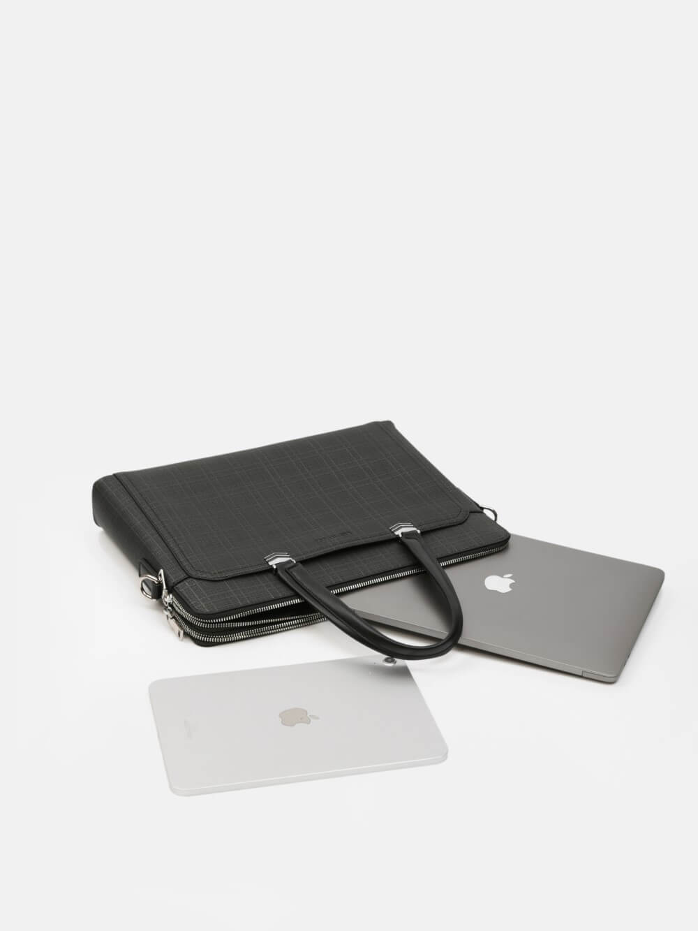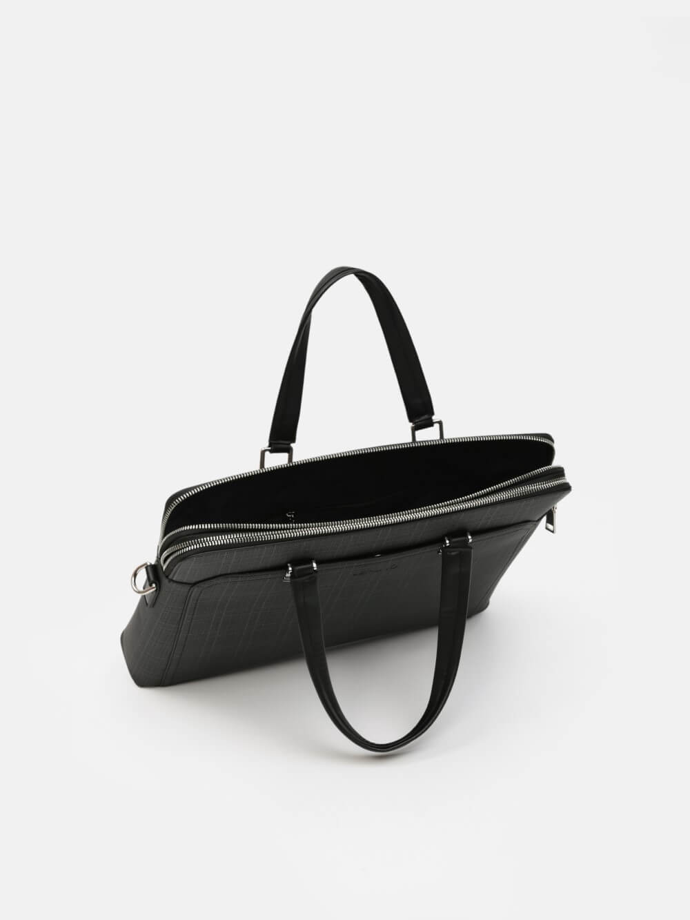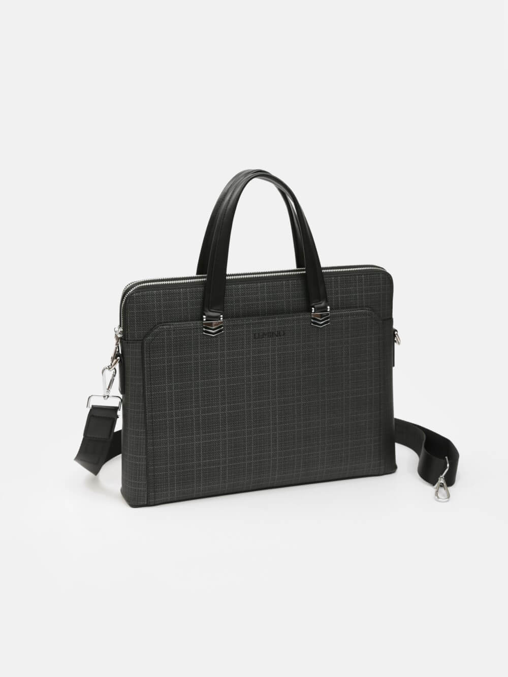 Túi công sở dáng briefcase LEMINO – phom đứng, tối giản lịch lãm. Thiết kế bản mỏng gọn, tay xách đôi chắc chắn, khoá kéo an toàn; điểm nhấn đai ngang với đinh tán tinh tế. Phù hợp mang đi làm, đi họp, đựng tài liệu và thiết bị mỏng