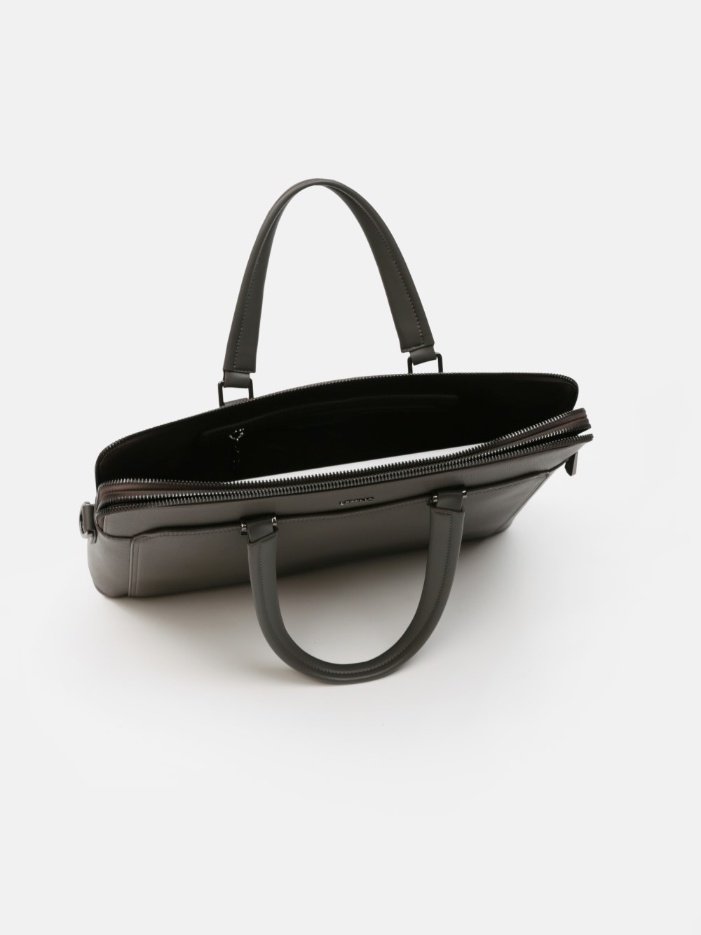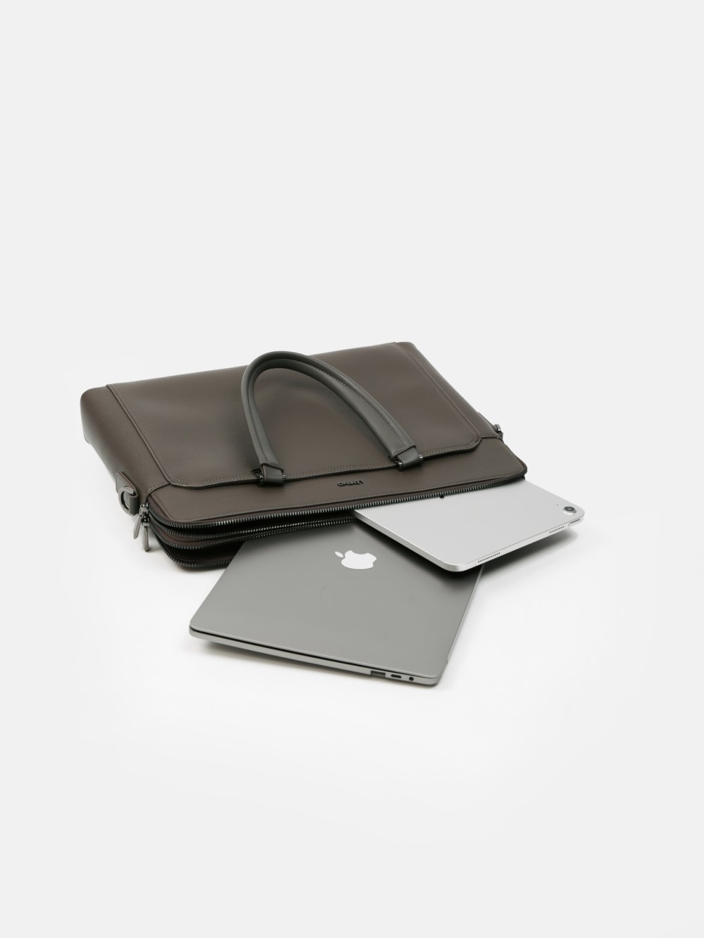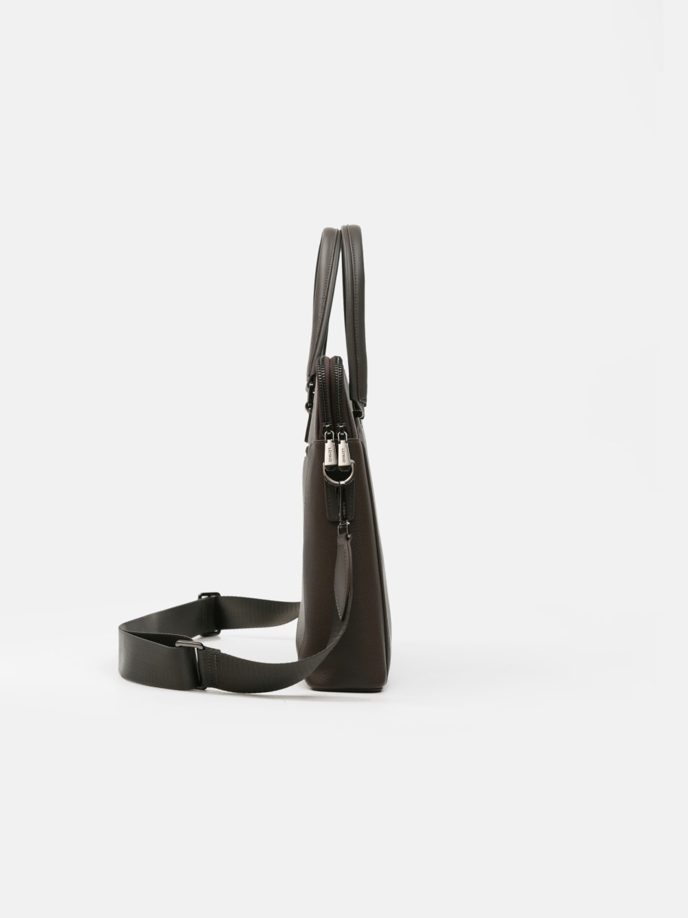 Cặp nam phom hộp mảnh mai với bề mặt da hạt chống trầy nhẹ, viền bo tinh gọn và phụ kiện kim loại màu gunmetal. Ngăn chính chứa tài liệu A4, laptop mỏng 13–14", kèm các ngăn phụ cho bút, thẻ, cáp; phía trước có ngăn nhanh tay. Đi kèm quai xách đôi và dây đeo tháo rời bản rộng cho hai cách mang linh hoạt. Dễ phối từ suit công sở đến smart–casual cuối tuần, giữ hình ảnh gọn gàng, chuyên nghiệp trong mọi lịch trình.