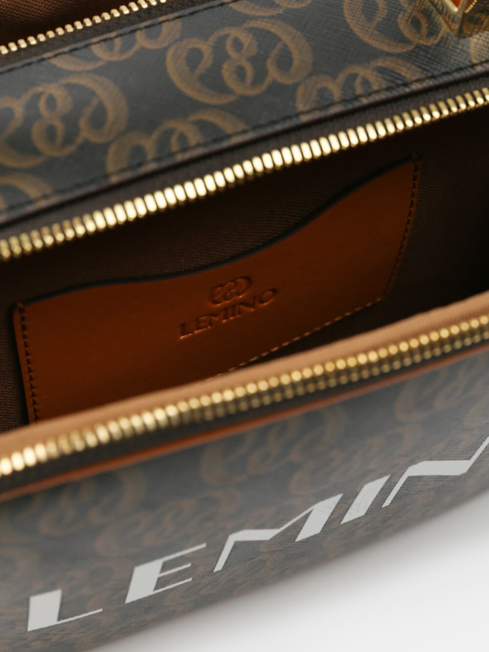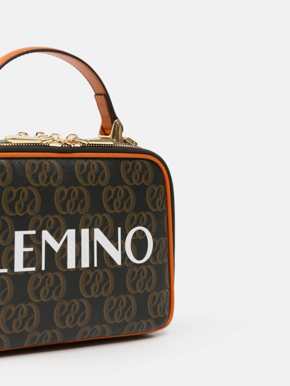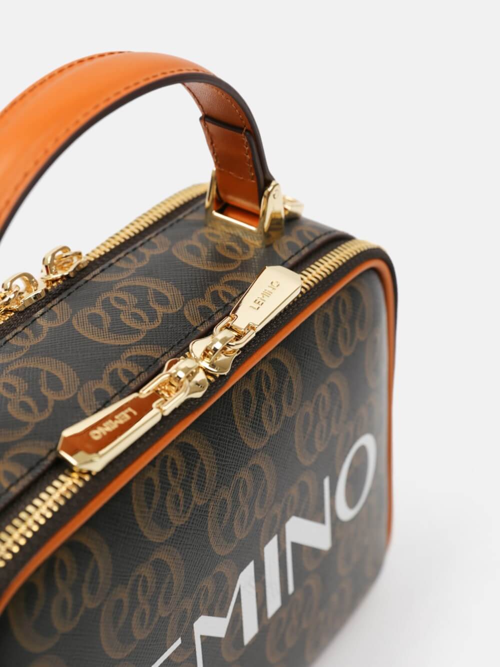 Túi box monogram LEMINO 2 ngăn – dáng vuông bo góc giữ phom, khóa kéo chạy quanh, tay xách da thanh lịch. Logo lớn nổi bật, viền da cam nâu sang nét, phù hợp đi chơi – hẹn hò – tiệc nhẹ.