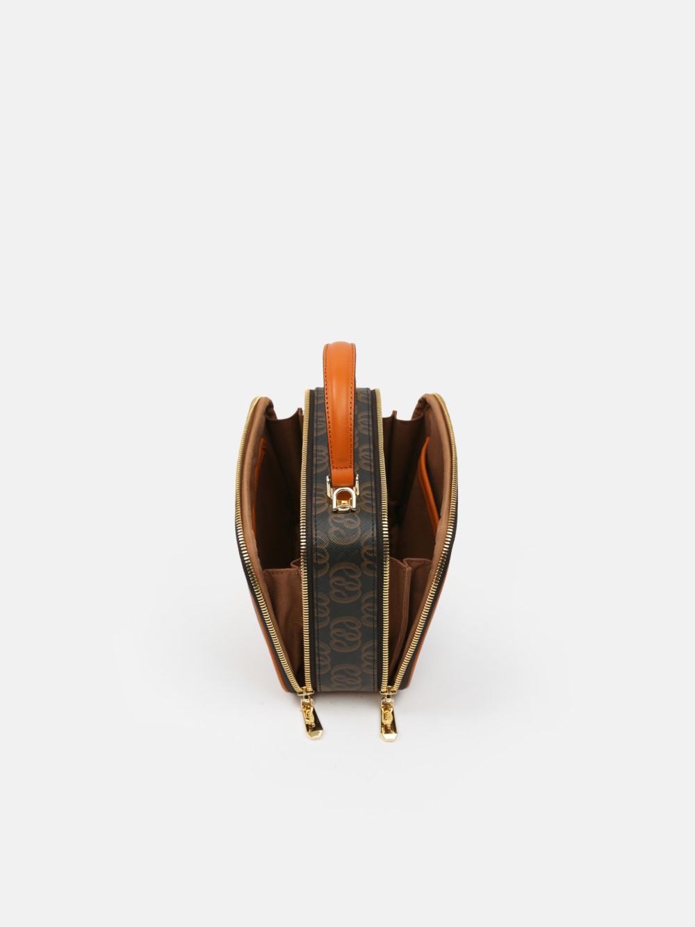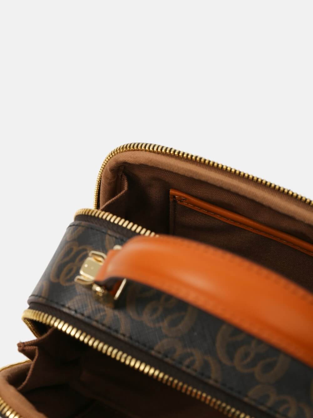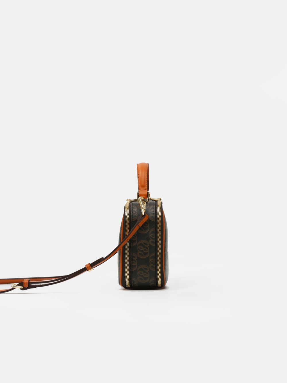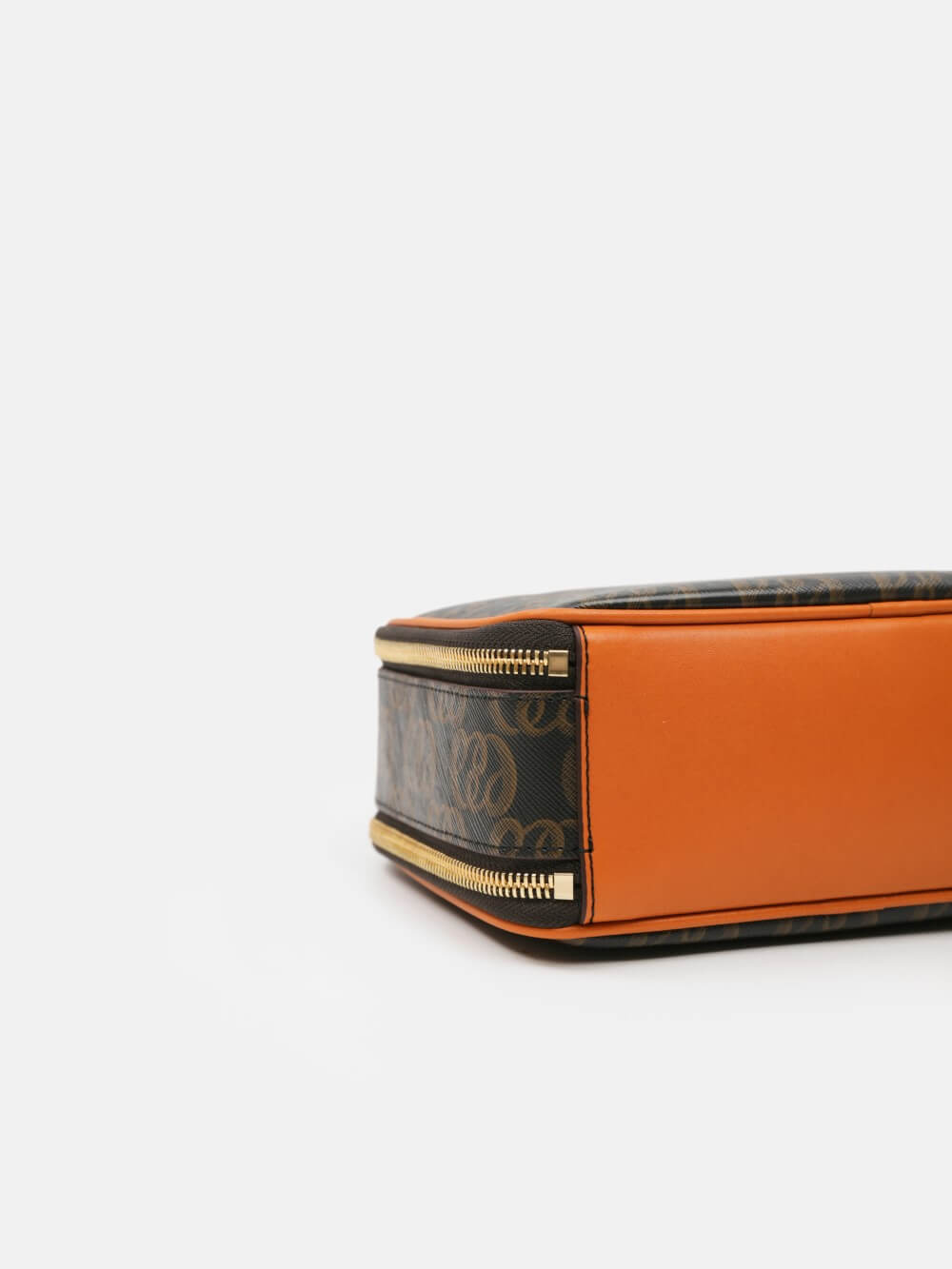 Túi box monogram LEMINO 2 ngăn – dáng vuông bo góc giữ phom, khóa kéo chạy quanh, tay xách da thanh lịch. Logo lớn nổi bật, viền da cam nâu sang nét, phù hợp đi chơi – hẹn hò – tiệc nhẹ.