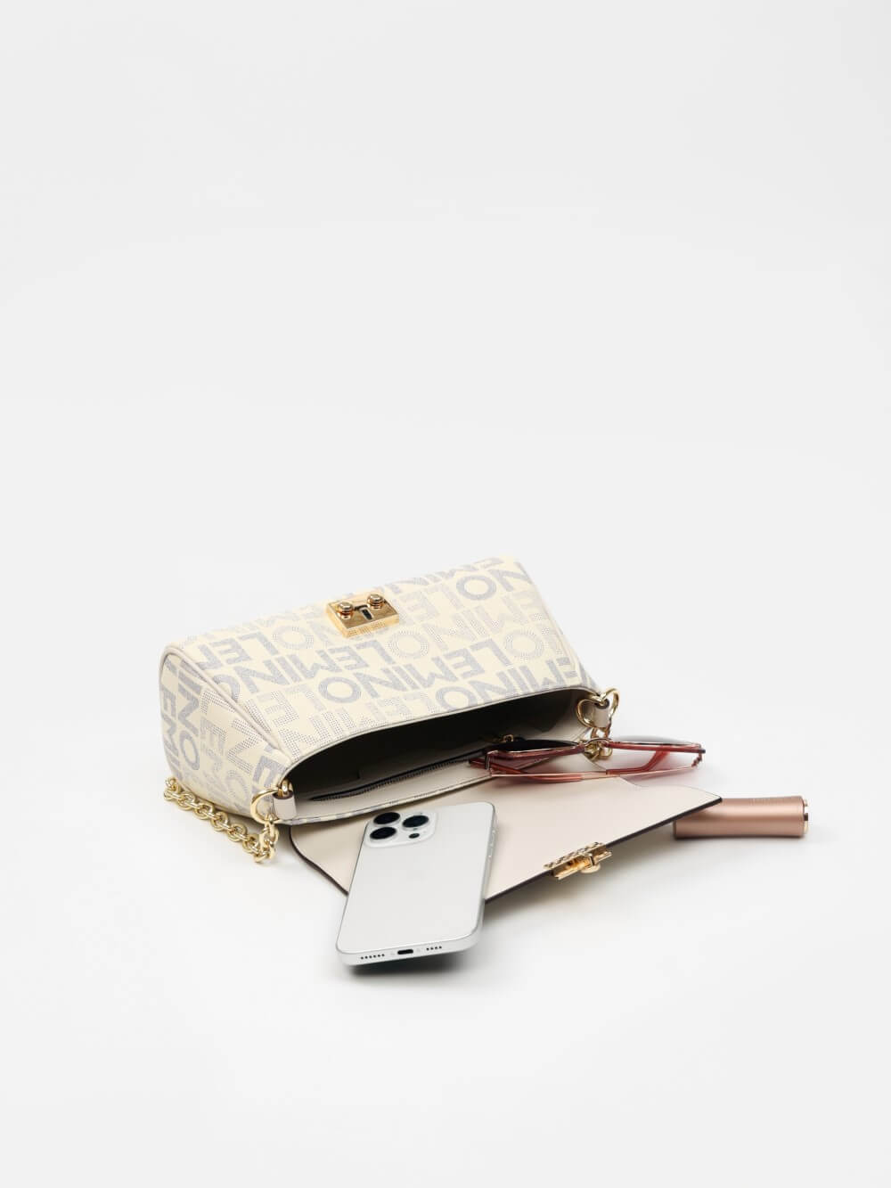 Túi flap LEMINO – dáng bo mềm thanh lịch, nắp gập kèm khóa vàng sang nét, dây xích ánh vàng nổi bật như trang sức. Gọn nhẹ, dễ phối từ công sở đến hẹn hò/tiệc nhẹ.