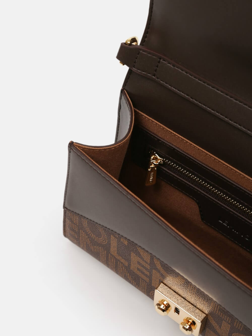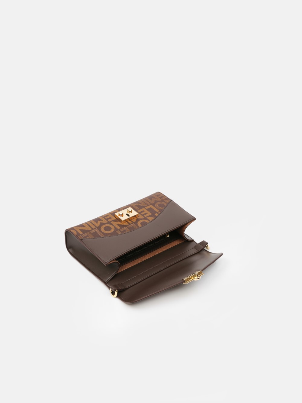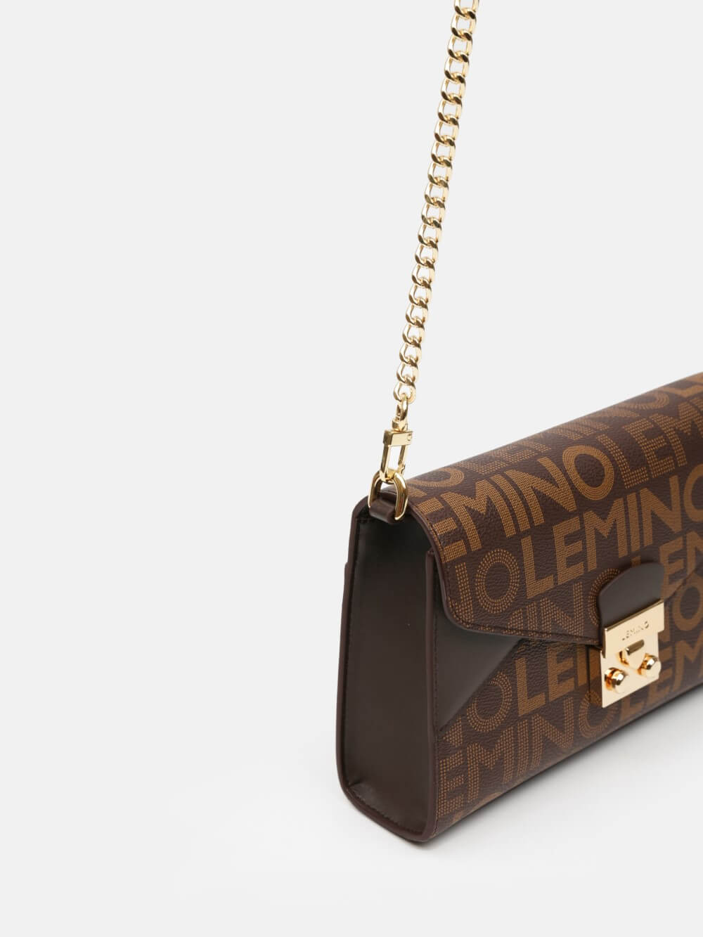 Túi nắp gập LEMINO Monogram Canvas dáng chữ nhật sang gọn, điểm nhấn khóa kim loại ánh vàng và phối màu ở góc nắp. Dây xích ánh vàng kèm đệm da êm vai, đeo vai/đeo chéo linh hoạt