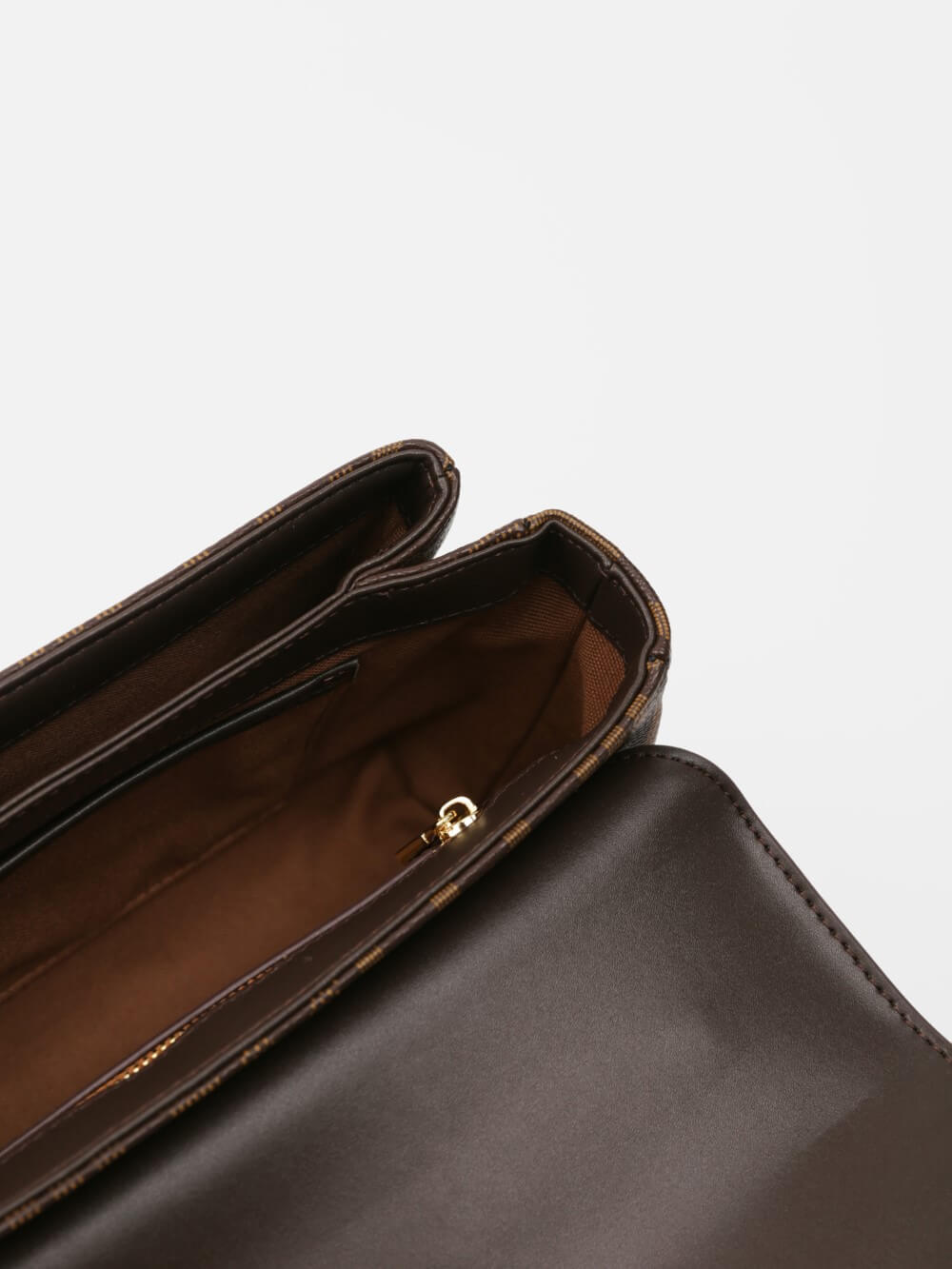 Túi hộp LEMINO với canvas monogram khoá bấm kim loại tông vàng. Phom cứng cáp giữ dáng, có tay cầm mini và dây đeo tháo rời/điều chỉnh để xách tay, đeo vai hoặc đeo chéo. Ngăn chính vừa điện thoại, ví mini, son – kèm ngăn phụ nhỏ cho thẻ/chìa khoá; bề mặt dễ lau chùi cho dùng hằng ngày. Dễ phối từ công sở đến dạo phố: mix sơ mi – quần tây/jeans, đầm midi hay blazer buổi tối