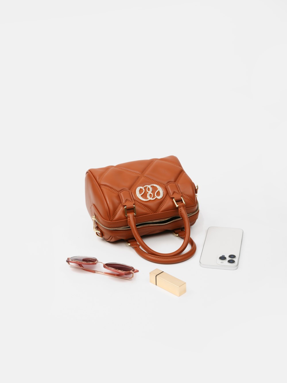 Phom hộp bo tròn sang gọn, bề mặt chần trám nổi tạo hiệu ứng cao cấp. Miệng túi khóa kéo 2 đầu, quai xách đôi thanh lịch, có khoen gắn dây đeo.
