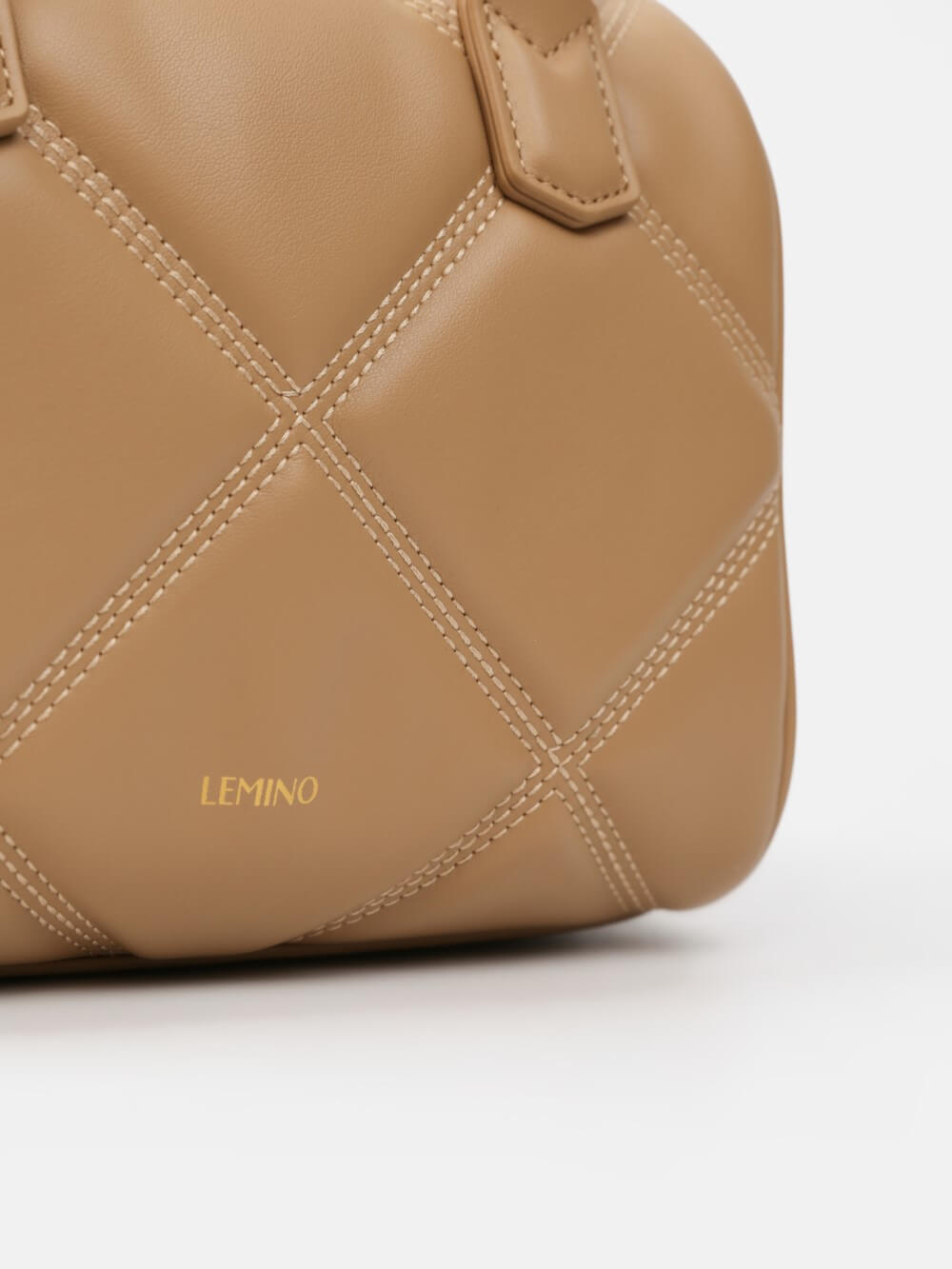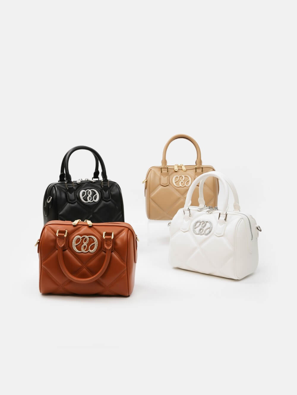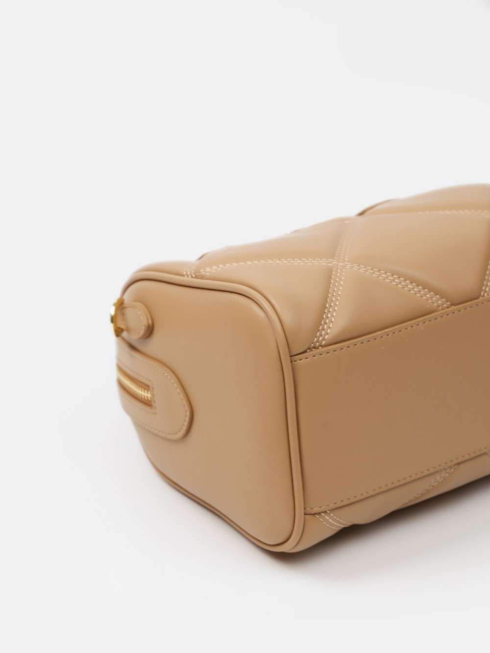 Phom hộp bo tròn sang gọn, bề mặt chần trám nổi tạo hiệu ứng cao cấp. Miệng túi khóa kéo 2 đầu, quai xách đôi thanh lịch, có khoen gắn dây đeo.