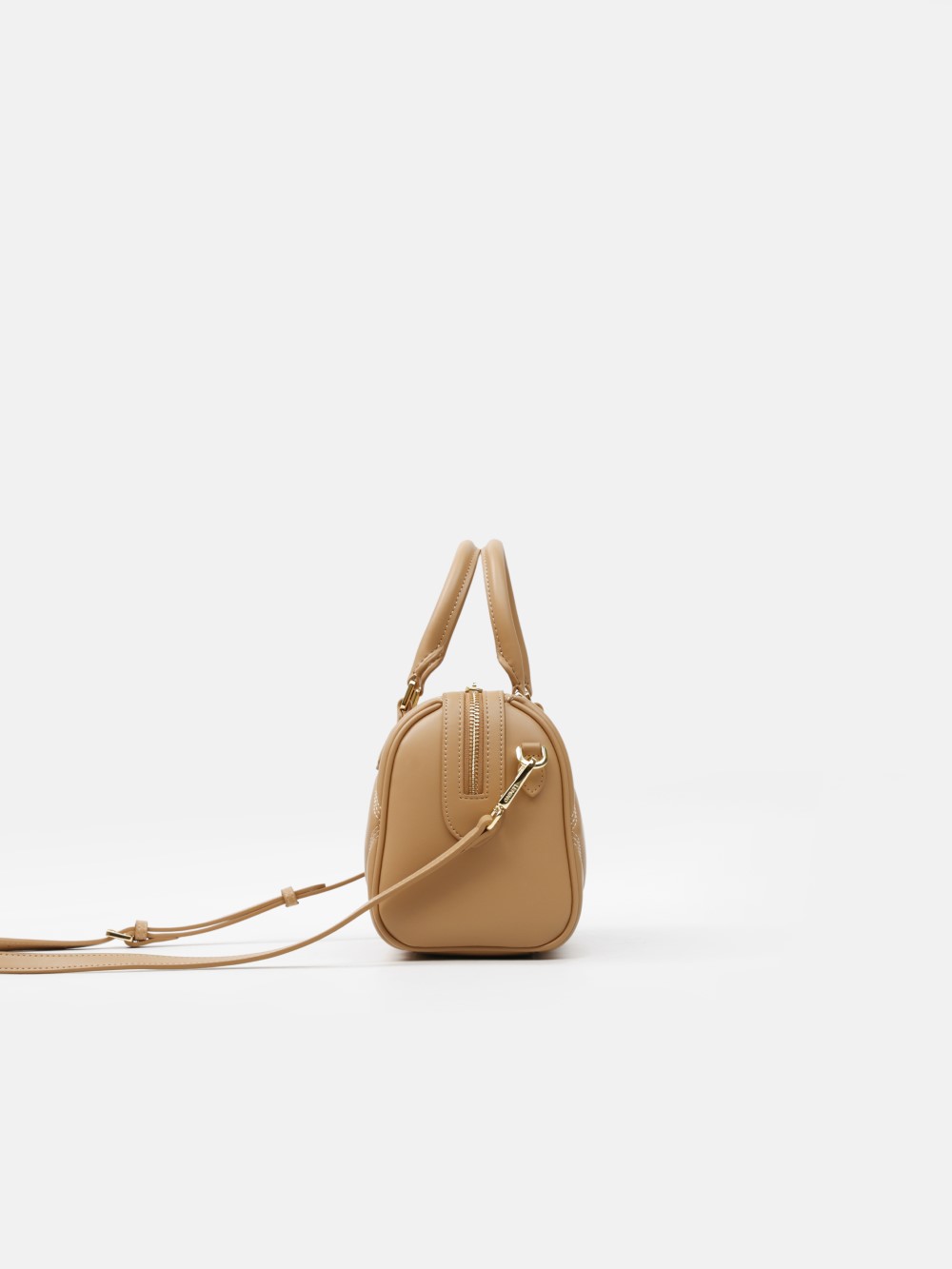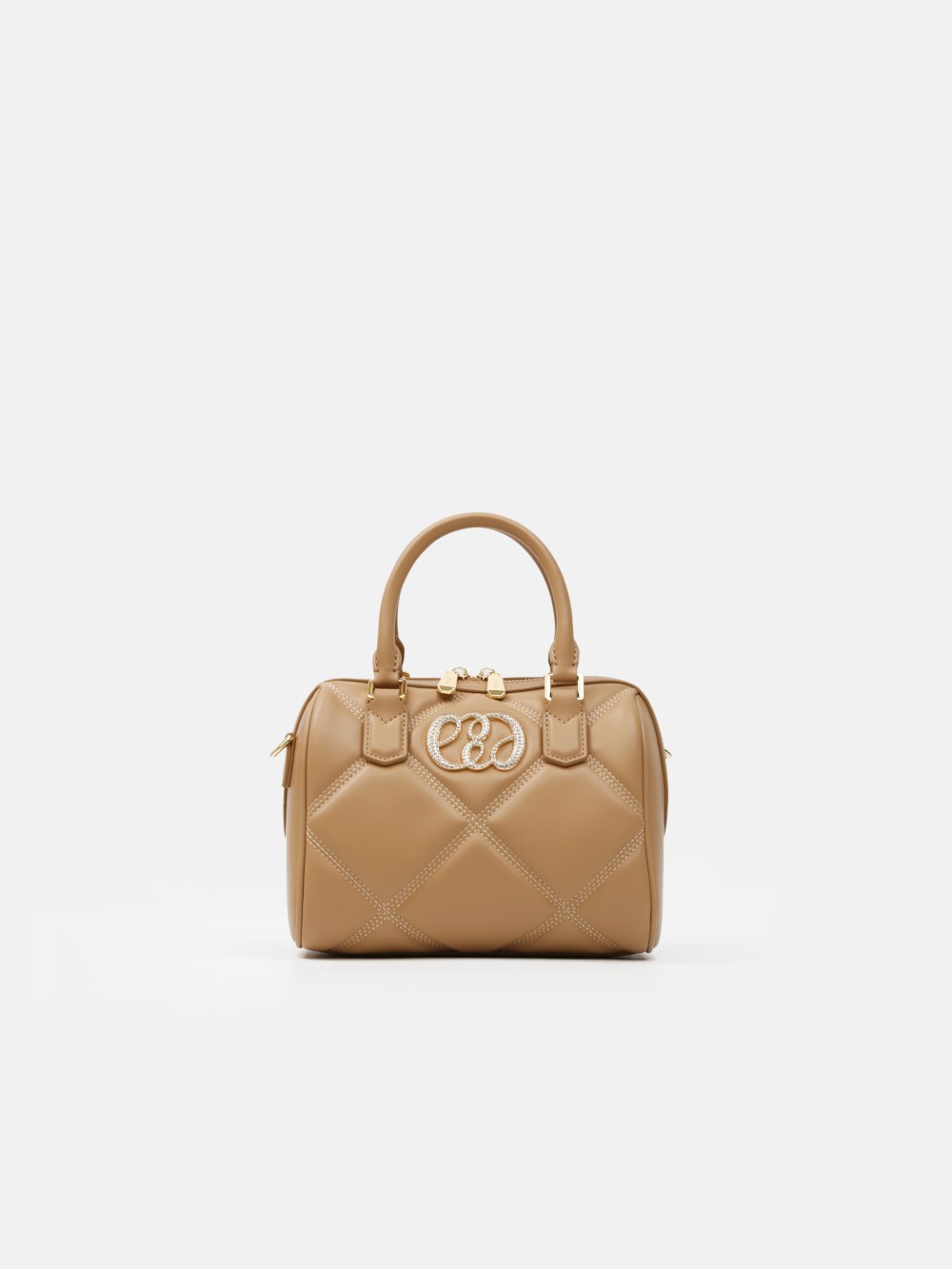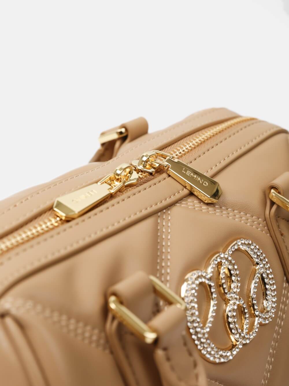 Phom hộp bo tròn sang gọn, bề mặt chần trám nổi tạo hiệu ứng cao cấp. Miệng túi khóa kéo 2 đầu, quai xách đôi thanh lịch, có khoen gắn dây đeo.