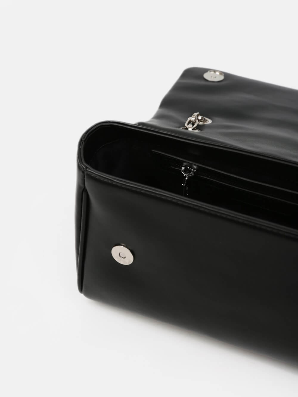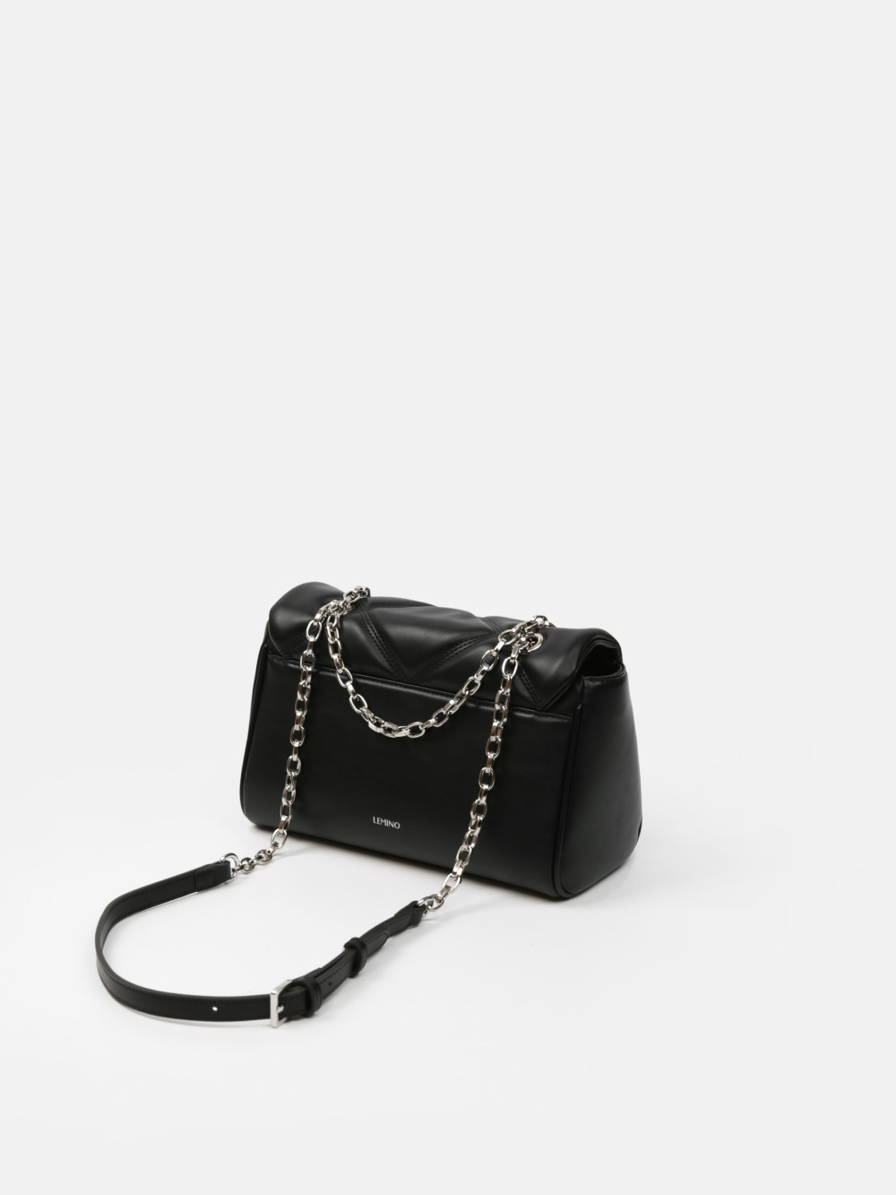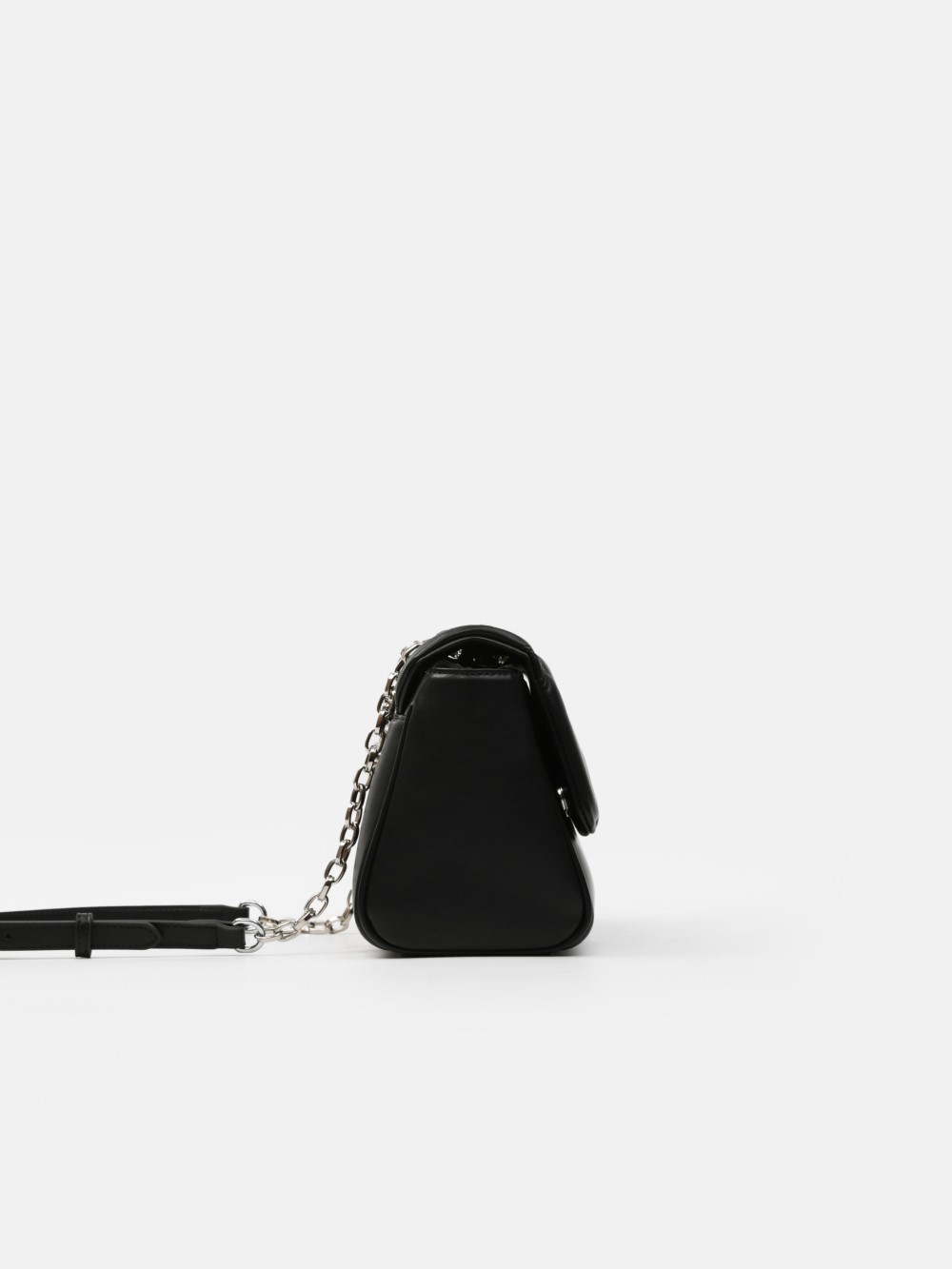 Dáng chữ nhật, nắp gập thanh lịch, điểm nhấn logo kim loại sang. Dây đeo xích kết hợp dây da điều chỉnh, linh hoạt đeo vai hoặc đeo chéo.