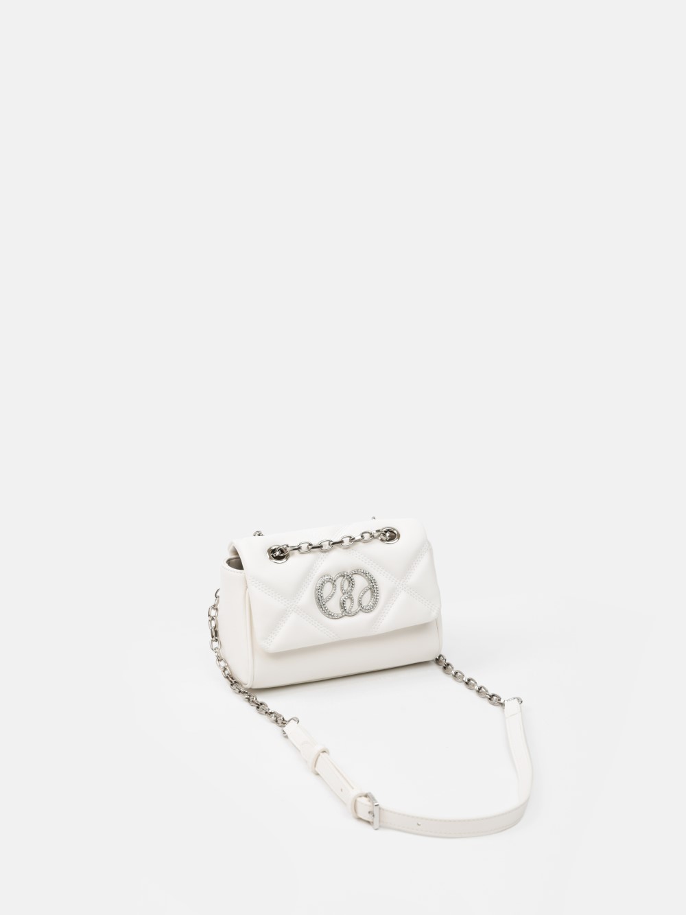 Nắp gập thanh lịch, điểm nhấn logo kim loại sang. Dây đeo xích kết hợp dây da điều chỉnh, linh hoạt đeo vai hoặc đeo chéo.