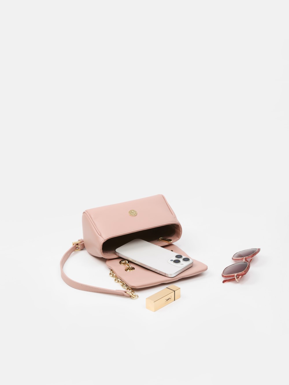 Túi flap chần trám – dây xích phối daNắp gập thanh lịch, điểm nhấn logo kim loại sang. Dây đeo xích kết hợp dây da điều chỉnh, linh hoạt đeo vai hoặc đeo chéo.