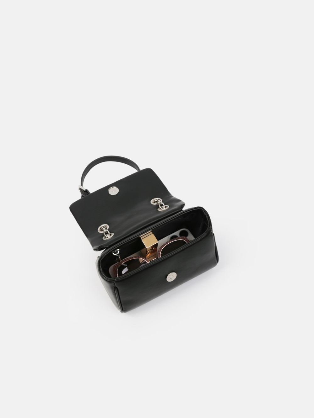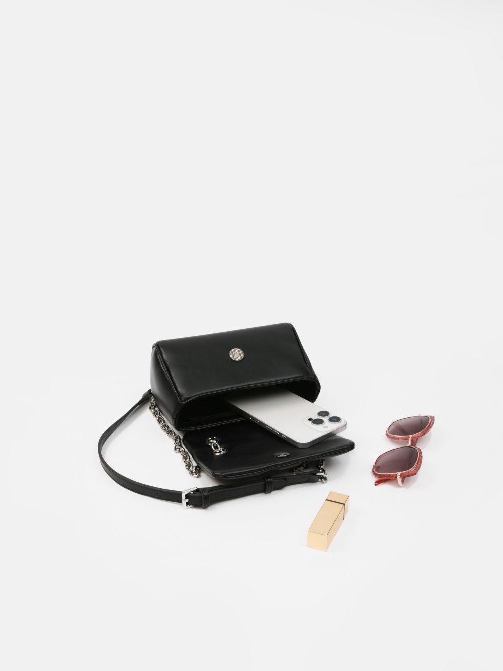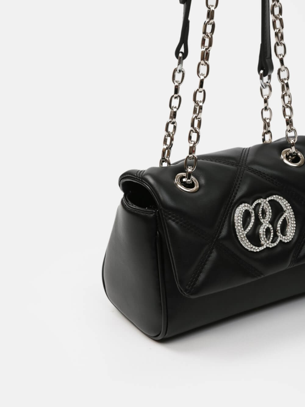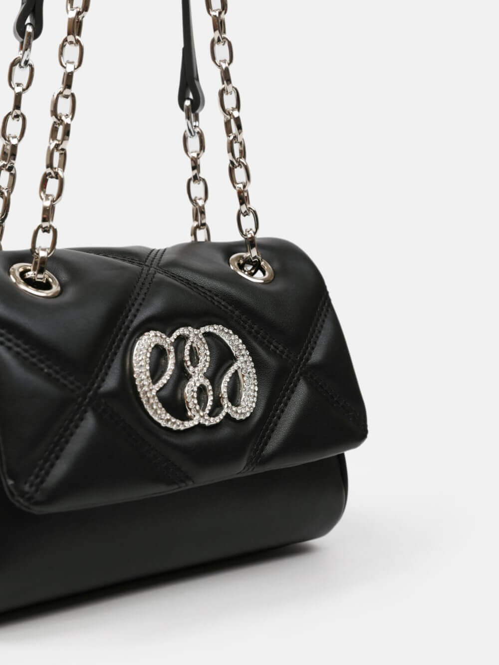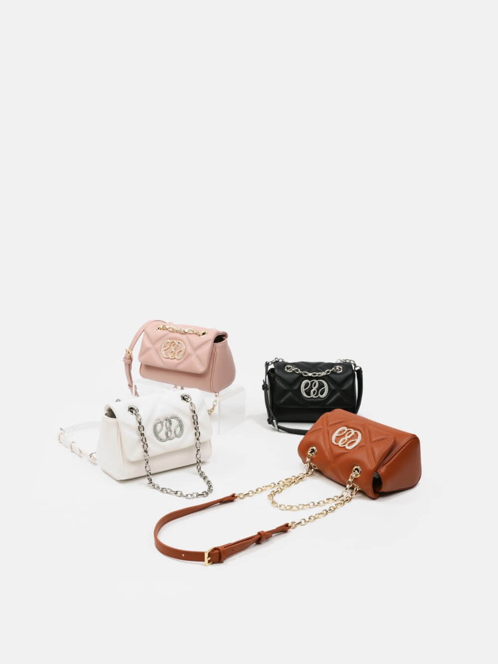 Nắp gập thanh lịch, điểm nhấn logo kim loại sang. Dây đeo xích kết hợp dây da điều chỉnh, linh hoạt đeo vai hoặc đeo chéo.