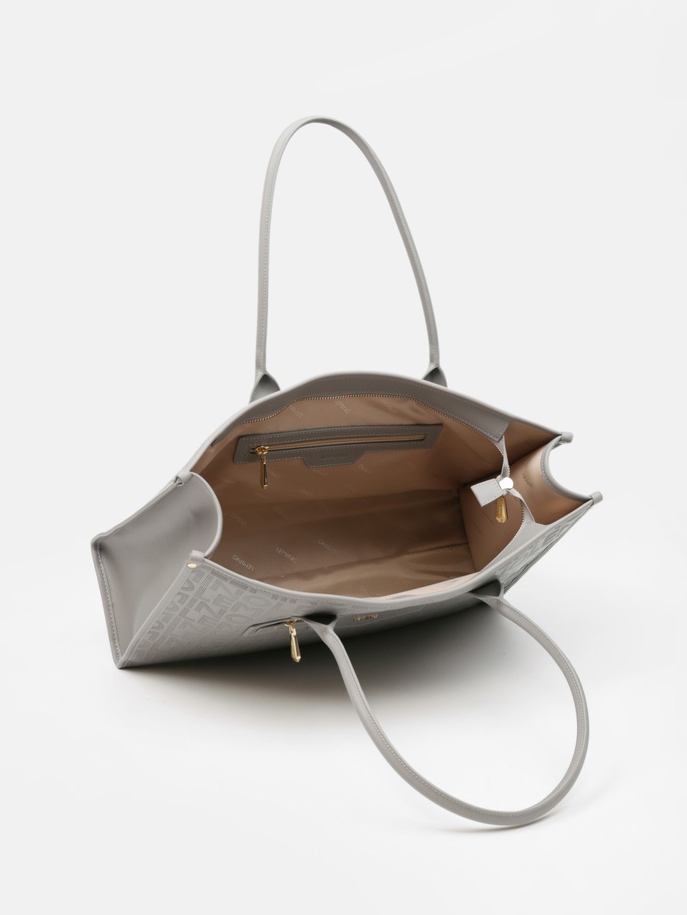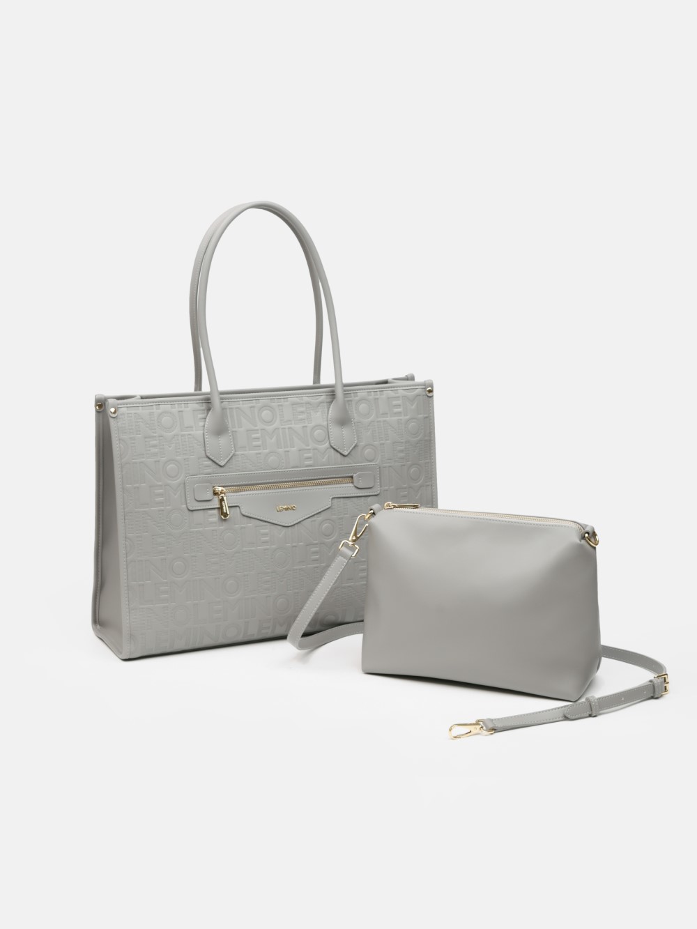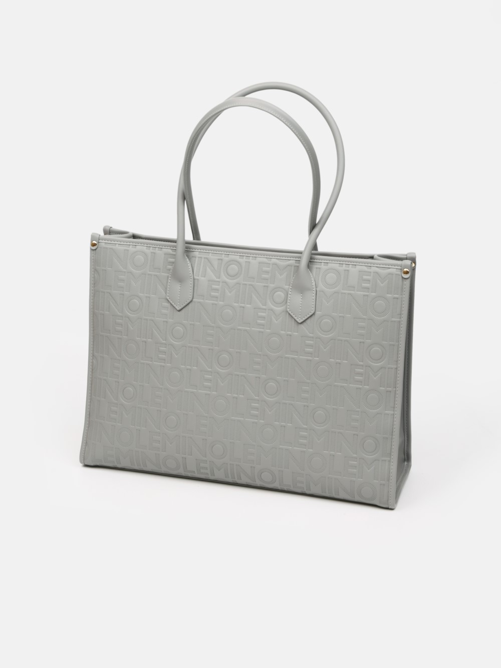 Bề mặt túi được xử lý dập monogram LEMINO toàn thân, tạo hiệu ứng sang trọng và nhận diện thương hiệu rõ nét. Điểm nhấn phía trước là ngăn khóa kéo ngang kết hợp logo kim loại tinh tế, vừa tăng tính thẩm mỹ vừa thuận tiện để cất giữ các vật dụng nhỏ.