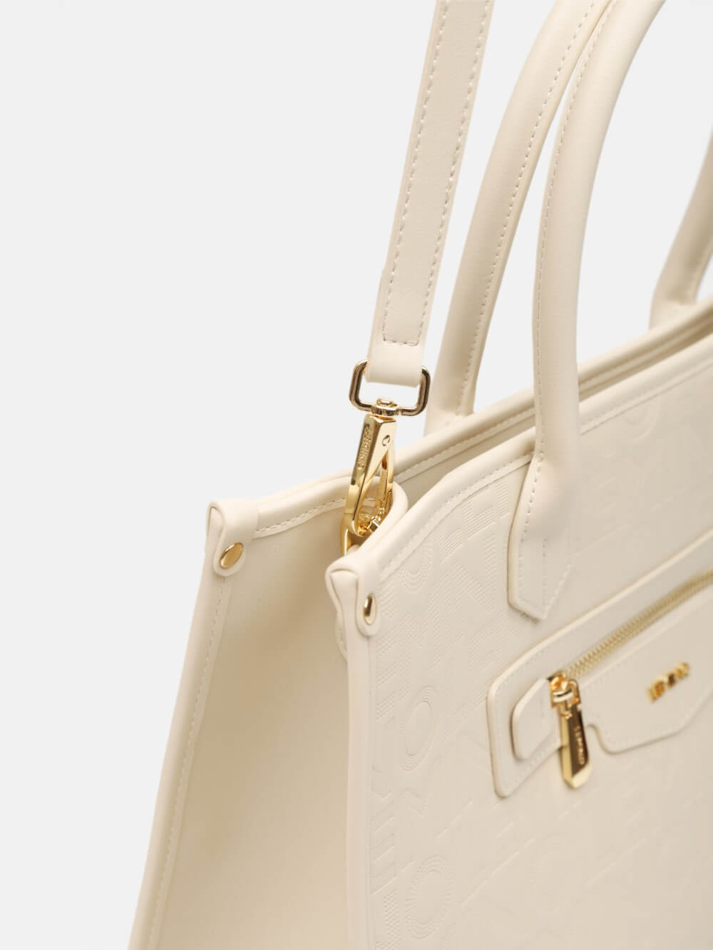 Điểm nhấn nổi bật nằm ở ngăn khóa kéo phía trước, vừa tăng tính tiện dụng vừa tạo chiều sâu cho thiết kế. Logo kim loại ánh vàng được đặt tinh tế, kết hợp cùng chi tiết khóa kéo đồng bộ mang lại vẻ ngoài cao cấp và hài hòa.