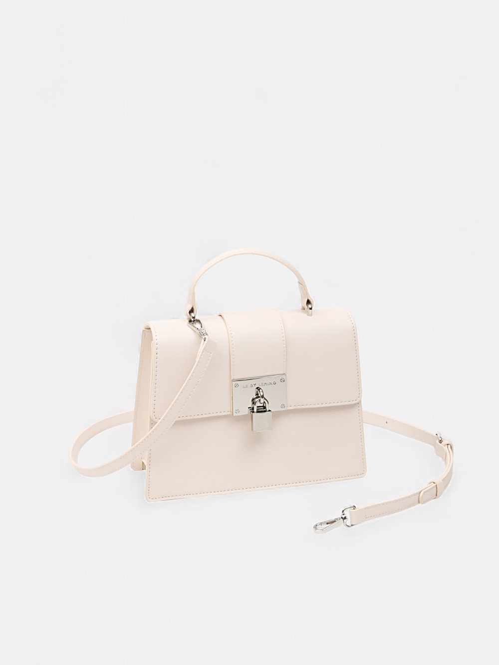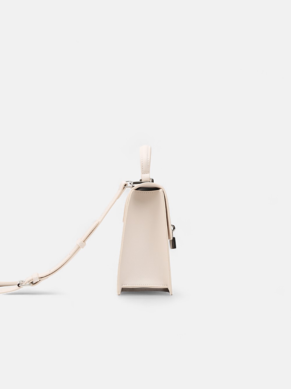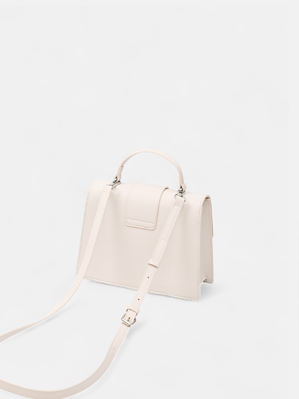 Túi top-handle LE BY LEMINO phom hộp giữ dáng, dây đeo tháo rời linh hoạt, đủ chỗ cho điện thoại và ví mini—chuẩn mực tối giản cho mọi ngày