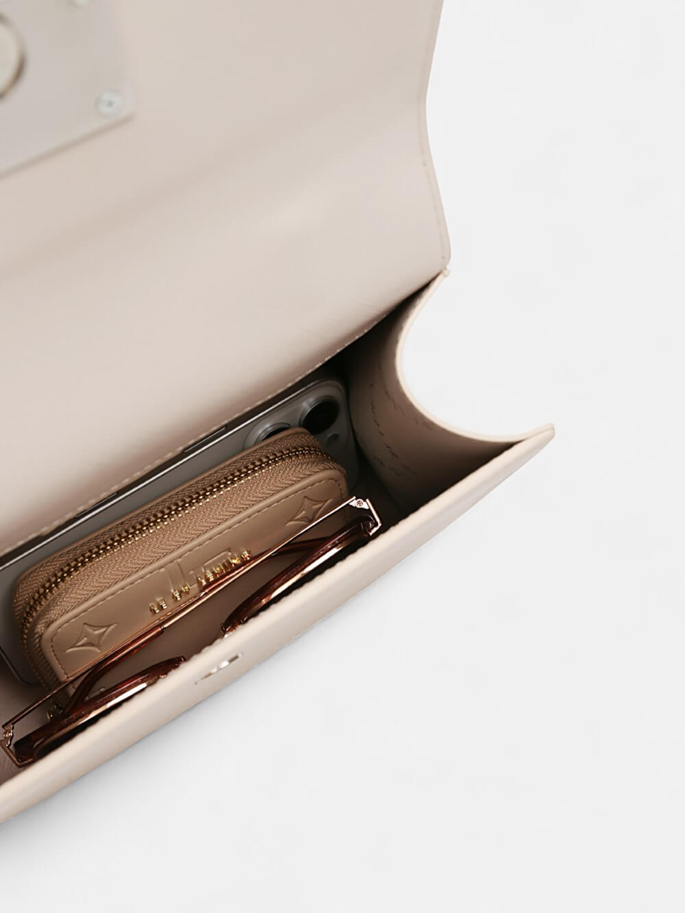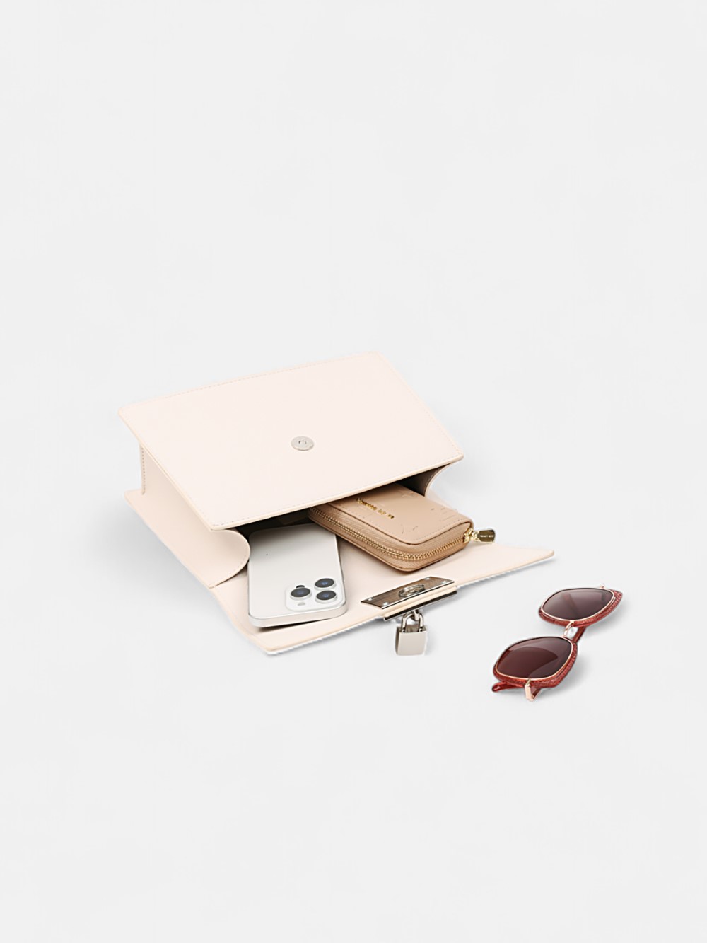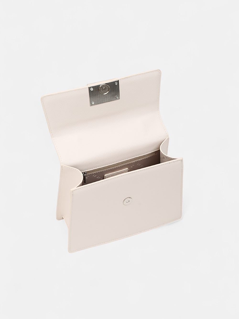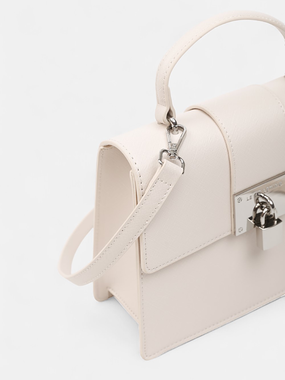 Túi top-handle LE BY LEMINO phom hộp giữ dáng, dây đeo tháo rời linh hoạt, đủ chỗ cho điện thoại và ví mini—chuẩn mực tối giản cho mọi ngày