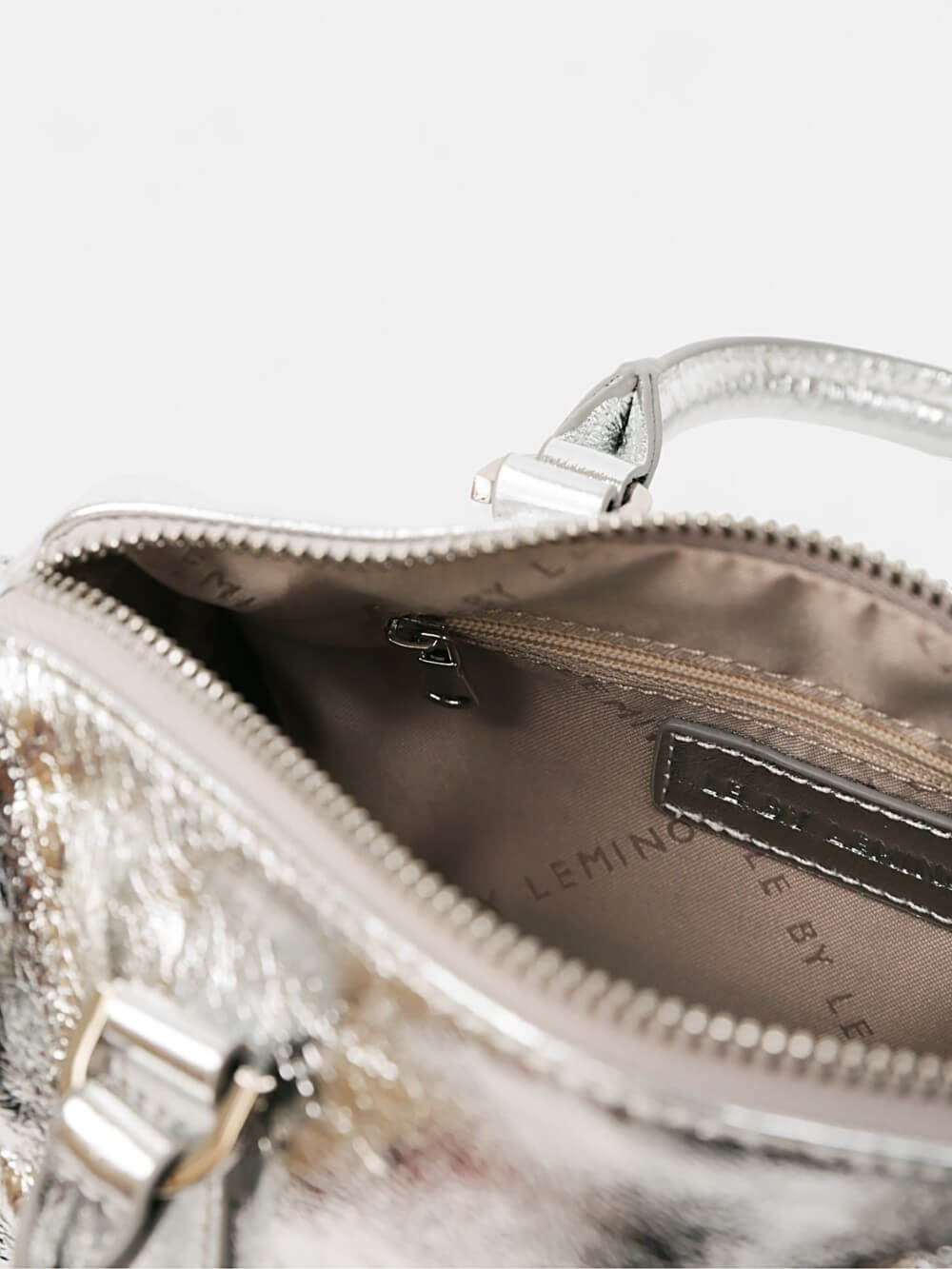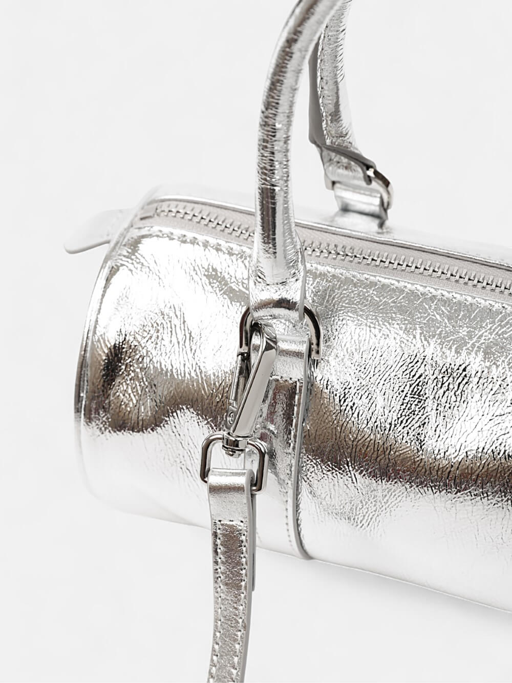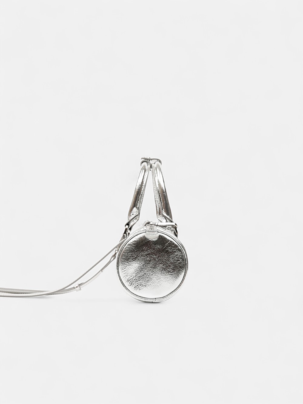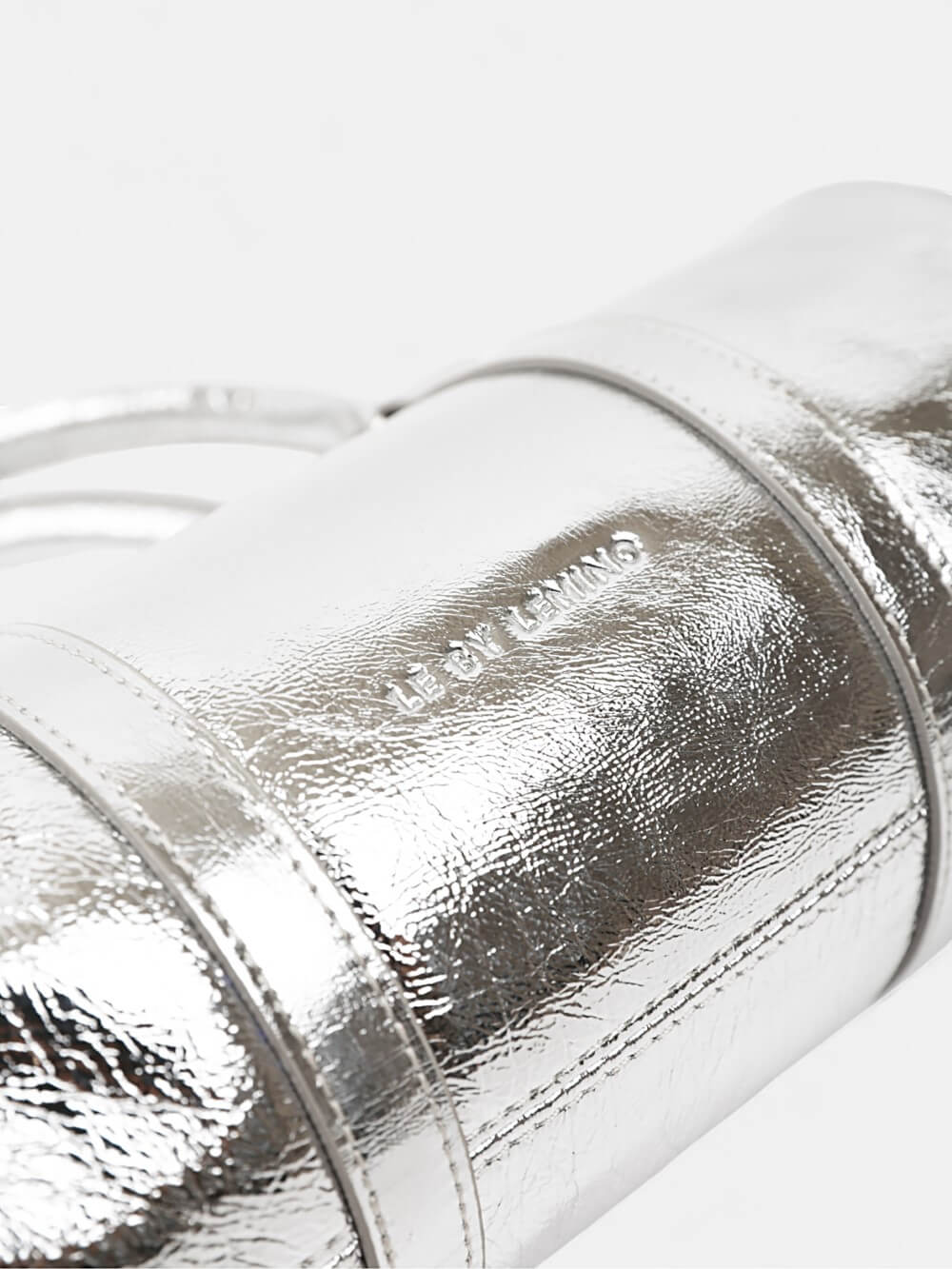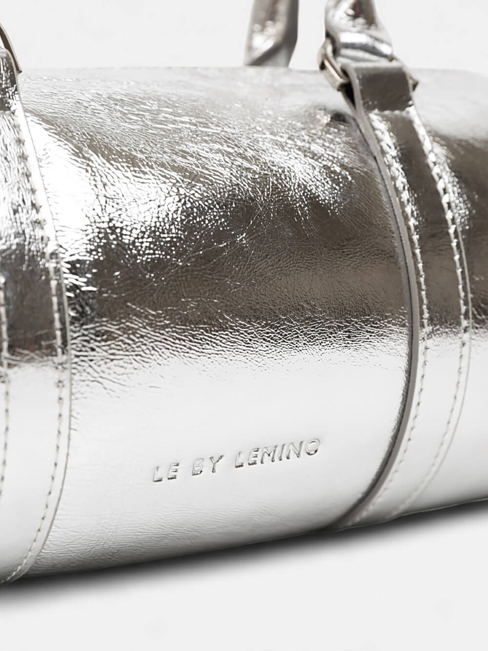 Mini barrel bag ánh kim LE BY LEMINO – phom trụ giữ dáng, khóa kéo an toàn, dây đeo tháo rời linh hoạt; nhỏ gọn nhưng đủ chỗ cho vật dụng mỗi ngày