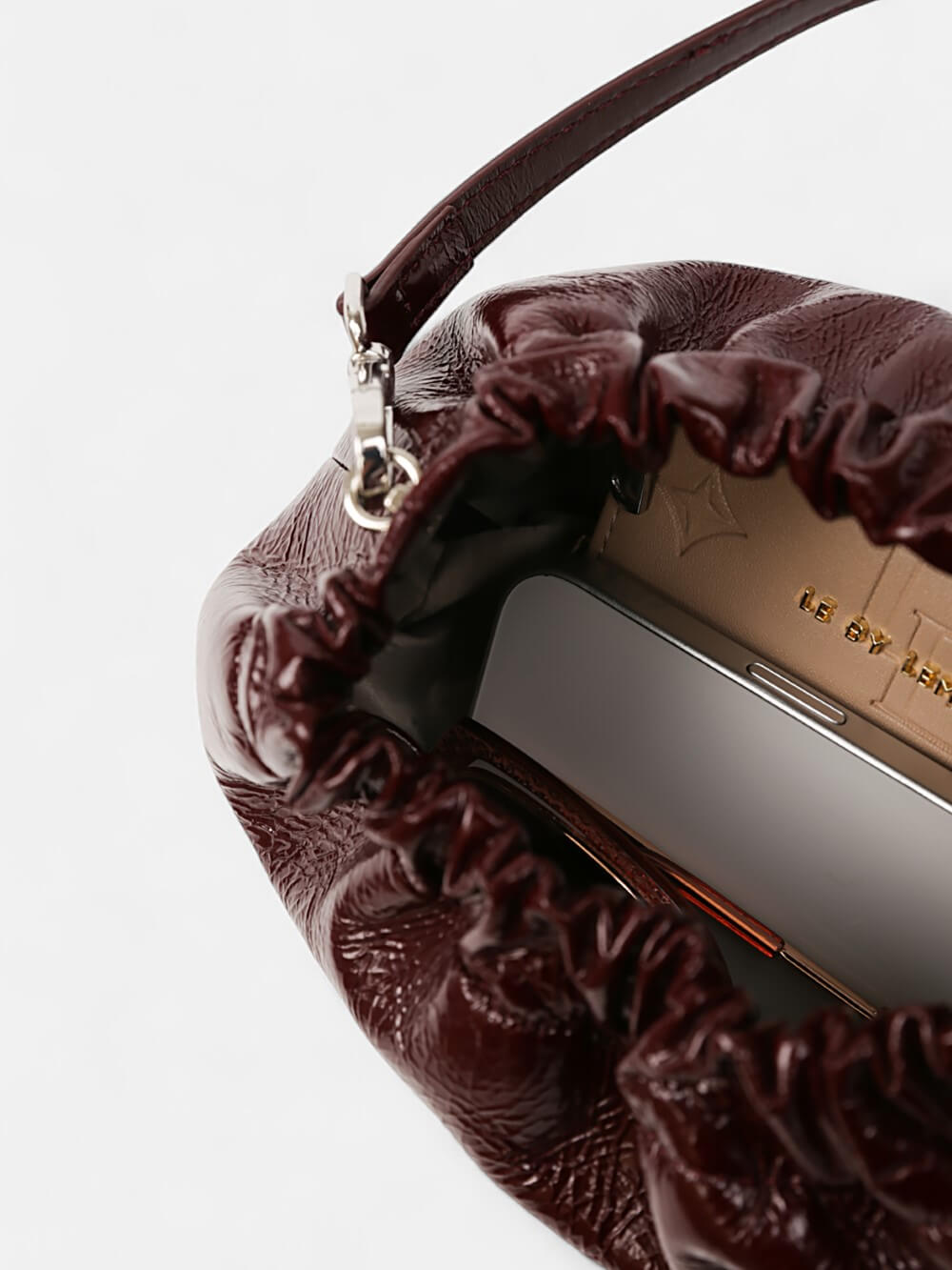 Mini ruched pouch ánh kim LE BY LEMINO – nhún mềm nữ tính, 2 dây đeo linh hoạt; điểm nhấn hoàn hảo cho cả ngày và buổi tối