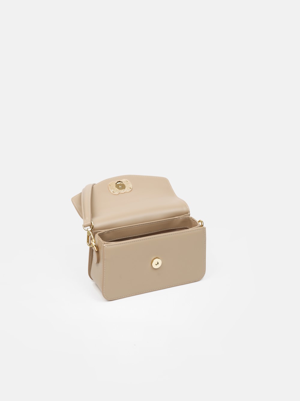 Thiết kế túi dáng mini vanity box nhỏ gọn, lấy cảm hứng từ những chiếc hộp trang điểm cổ điển nhưng được làm mới với tinh thần hiện đại và thanh lịch. Phom túi hình hộp đứng dáng, mang lại vẻ chỉn chu và sang trọng khi cầm tay hoặc đeo chéo.
