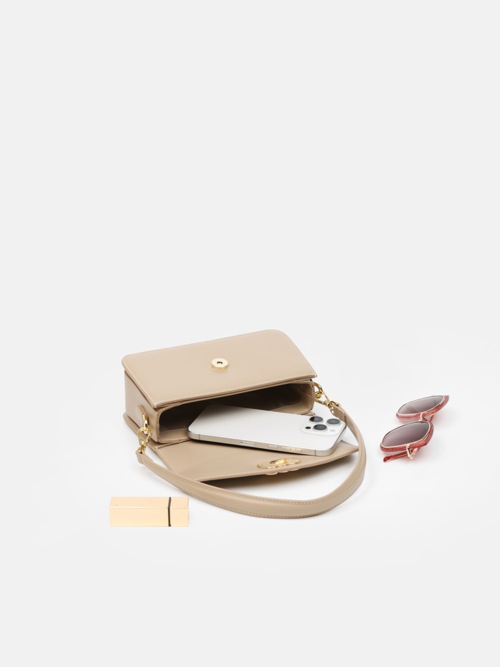 Túi được trang bị tay cầm phía trên để xách tay thanh lịch và dây đeo chéo tháo rời, giúp linh hoạt thay đổi phong cách sử dụng.