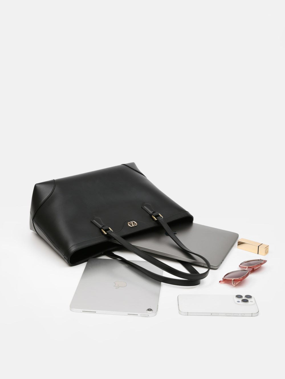 Túi tote nữ thiết kế tối giản với logo kim loại LL tinh tế. Khoang rộng rãi, quai đeo vai thoải mái và chất liệu da Microfiber cao cấp – phù hợp cho công sở và sử dụng hằng ngày.