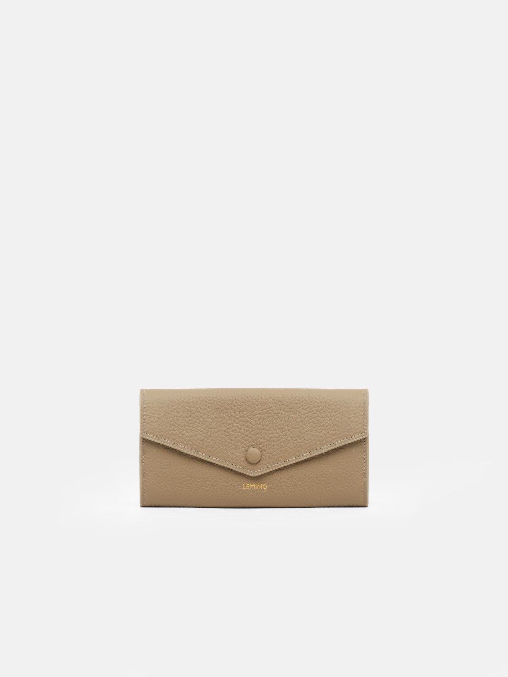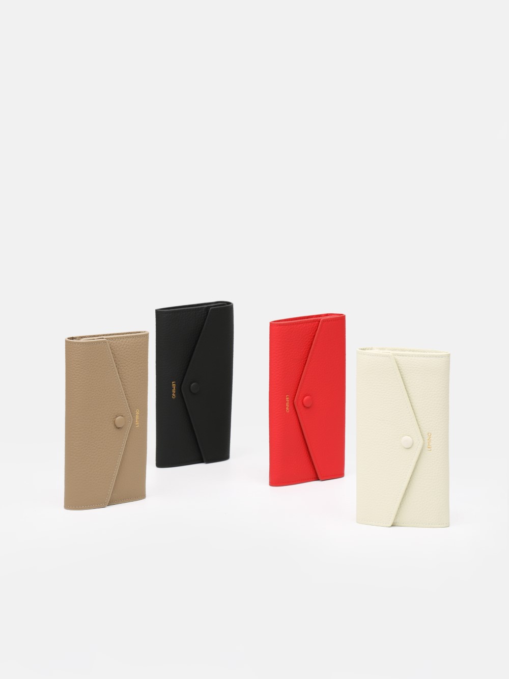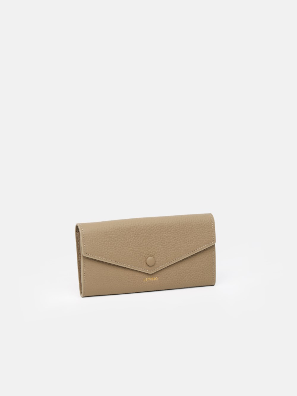 Được tái hiện lại vẻ bề ngoài giống như một chiếc bì thư quen thuộc, nắp gập với khuy bấm chắc chắc cùng cấu trúc ngăn đa dạng thường thấy ở các thiết kế ví cầm tay nữ của Lemino.