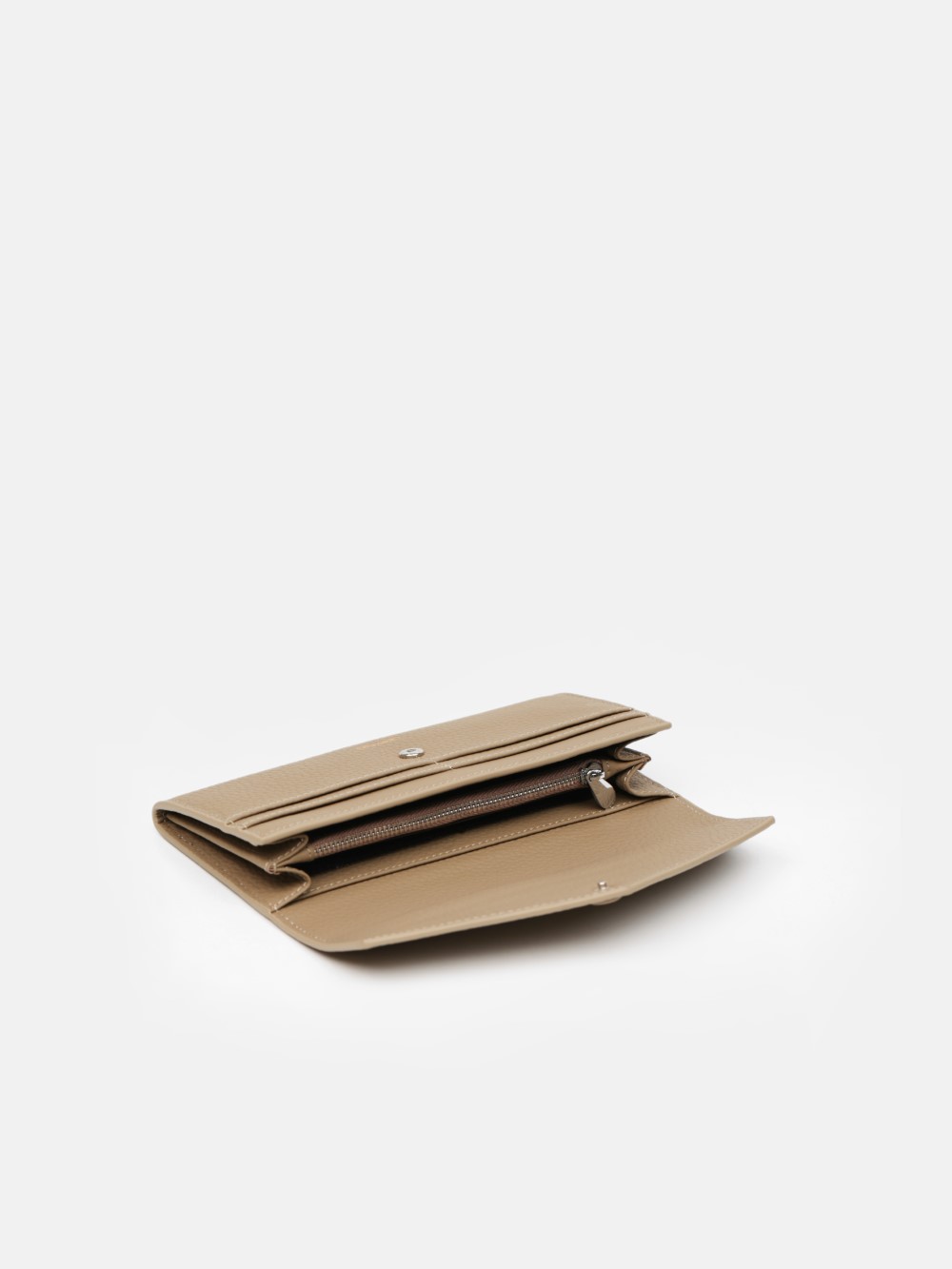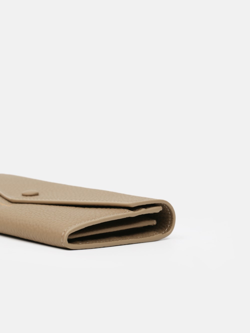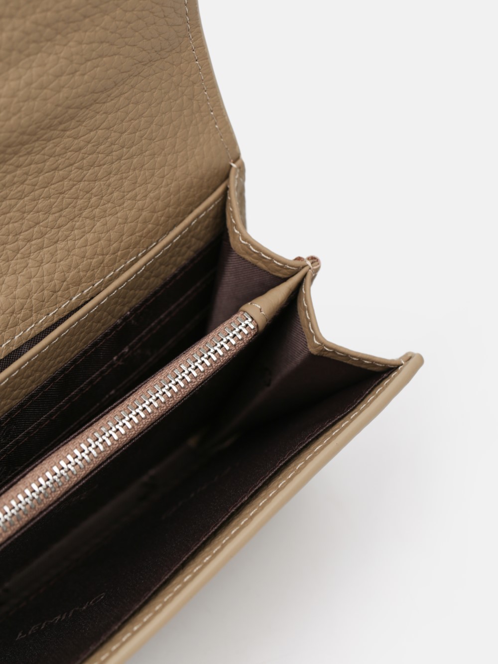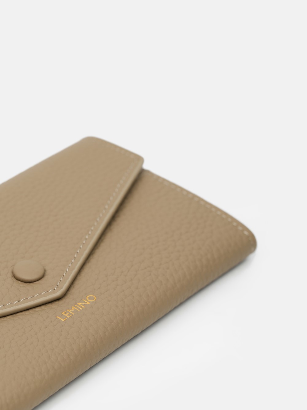 Được tái hiện lại vẻ bề ngoài giống như một chiếc bì thư quen thuộc, nắp gập với khuy bấm chắc chắc cùng cấu trúc ngăn đa dạng thường thấy ở các thiết kế ví cầm tay nữ của Lemino.