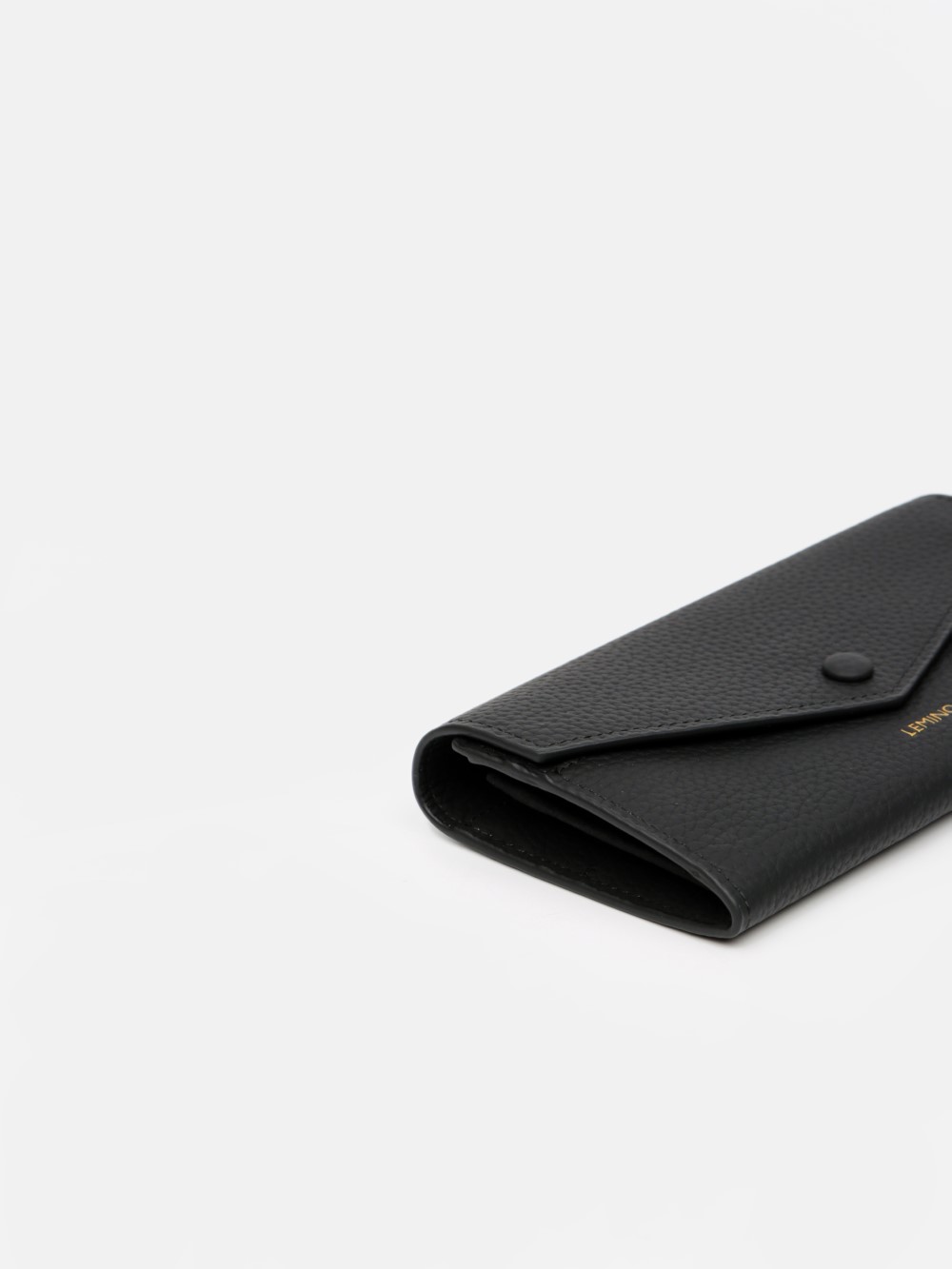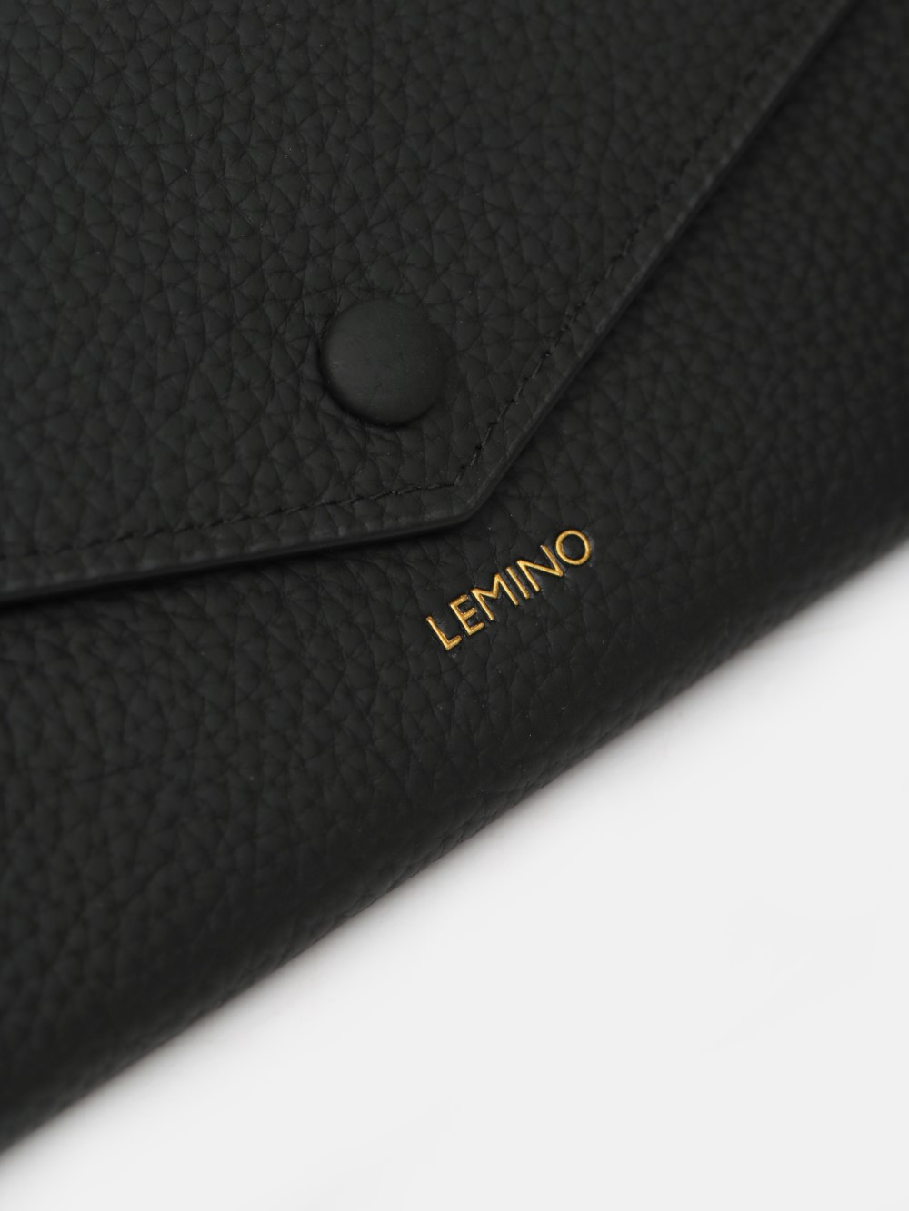 Được tái hiện lại vẻ bề ngoài giống như một chiếc bì thư quen thuộc, nắp gập với khuy bấm chắc chắc cùng cấu trúc ngăn đa dạng thường thấy ở các thiết kế ví cầm tay nữ của Lemino.