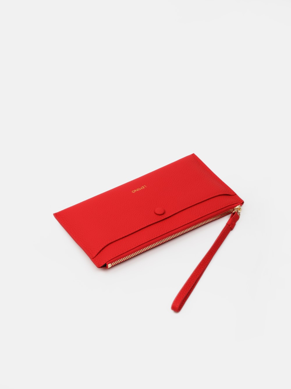 Ví cầm tay LEMINO dáng mảnh, da hạt sang trọng, khoang khóa kéo gọn gàng kèm ngăn trước nút bấm và quai đeo cổ tay tiện lợi. Tối giản nhưng nổi bật, đồng hành từ công sở đến dạo phố.
