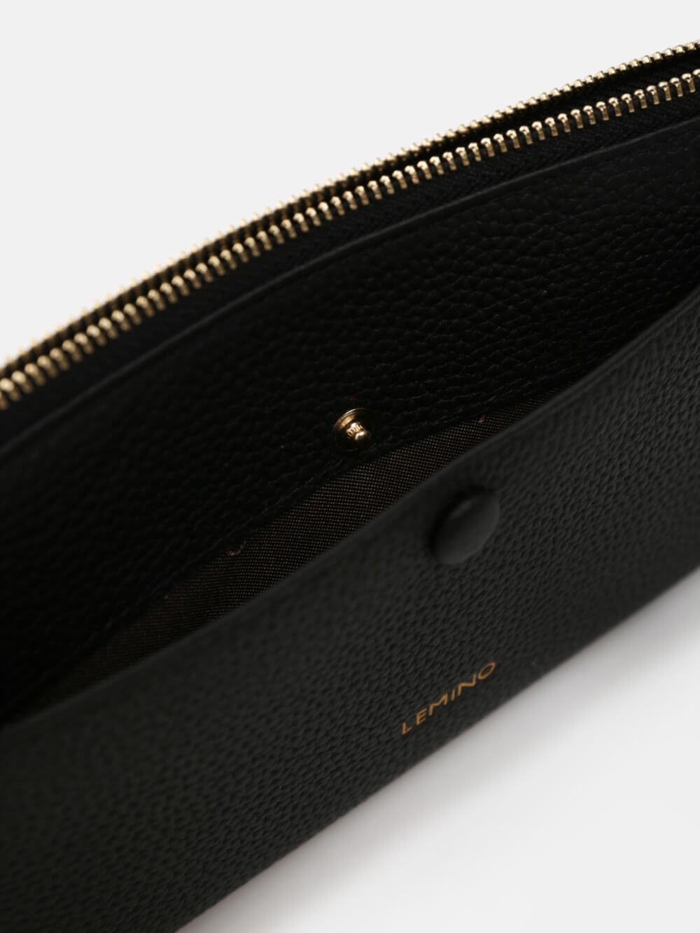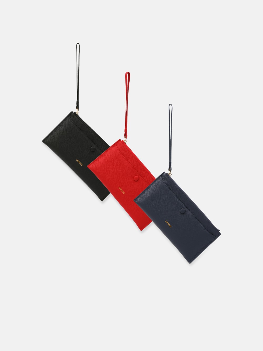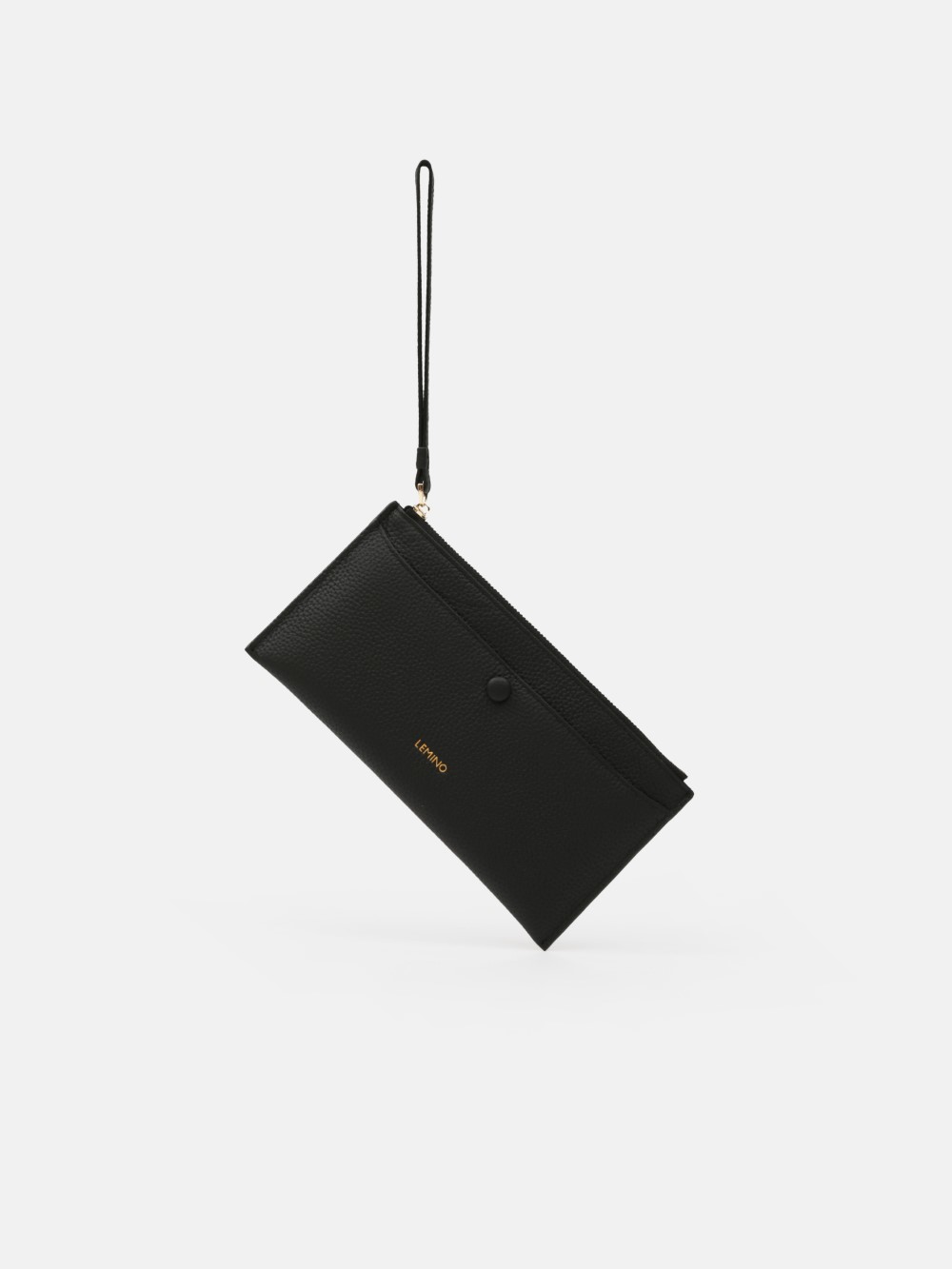 Ví cầm tay LEMINO dáng mảnh, da hạt sang trọng, khoang khóa kéo gọn gàng kèm ngăn trước nút bấm và quai đeo cổ tay tiện lợi. Tối giản nhưng nổi bật, đồng hành từ công sở đến dạo phố.