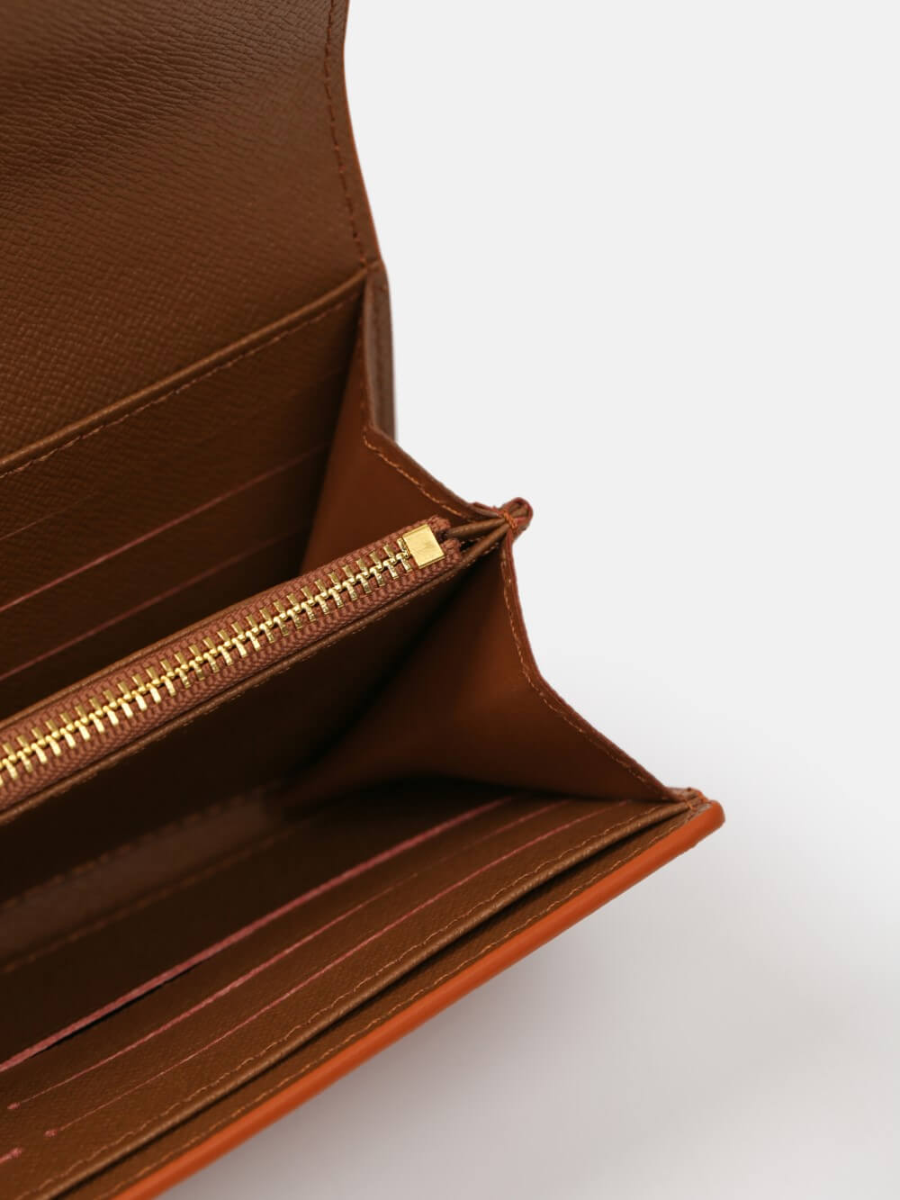 Thanh lịch và tiện dụng vượt thời gian, chiếc ví cầm tay này là món đồ thiết yếu hoàn hảo hàng ngày mà cô gái nào cũng cần phải có. Kiểu dáng nắp gập thon dài, được tạo điểm nhấn bằng họa tiết Monogram tinh xảo trứ danh, kết hợp hài hòa với phần cứng tông màu be trơn trơn. Được tối ưu hóa về tiện ích, ví có nhiều ngăn đựng thẻ, ngăn đựng hóa đơn và ngăn có khóa kéo rộng rãi.